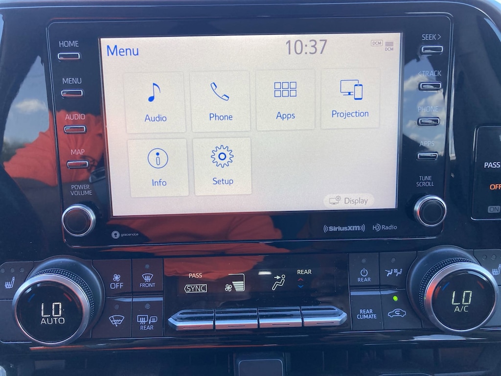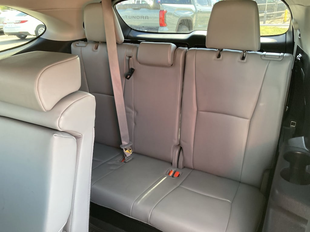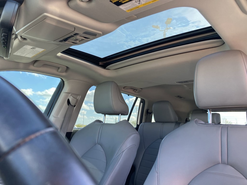 Features: AWD, 18" Machined Alloy Wheels, 3.003 Axle Ratio, 3rd row seats: split-bench, 4-Wheel Disc Brakes, 6 Speakers, ABS brakes, Air Conditioning, Alloy wheels, AM/FM radio: SiriusXM, Apple CarPlay/Android Auto, Auto High-beam Headlights, Auto-dimming Rear-View mirror, Automatic temperature control, Brake assist, Bumpers: body-color, Delay-off headlights, Driver door bin, Driver vanity mirror, Dual front impact airbags, Dual front side impact airbags, Electronic Stability Control, Emergency communication system: Safety Connect with 3-year trial, Exterior Parking Camera Rear, Four wheel independent suspension, Front anti-roll bar, Front Bucket Seats, Front Center Armrest, Front dual zone A/C, Front fog lights, Front reading lights, Fully automatic headlights, Garage door transmitter: HomeLink, Heated door mirrors, Heated Front Bucket Seats, Heated front seats, Illuminated entry, Knee airbag, Leather Shift Knob, Low tire pressure warning, Occupant sensing airbag, Outside temperature display, Overhead airbag, Overhead console, Panic alarm, Passenger door bin, Passenger vanity mirror, Power door mirrors, Power driver seat, Power Liftgate, Power moonroof, Power passenger seat, Power steering, Power windows, Radio: Audio Plus (T1 Hi), Rear air conditioning, Rear anti-roll bar, Rear reading lights, Rear window defroster, Rear window wiper, Reclining 3rd row seat, Remote keyless entry, Roof rack: rails only, Security system, SofTex Seat Trim, Speed control, Speed-sensing steering, Split folding rear seat, Spoiler, Steering wheel mounted audio controls, Tachometer, Telescoping steering wheel, Tilt steering wheel, Traction control, Trip computer, Turn signal indicator mirrors, and Variably intermittent wipers.