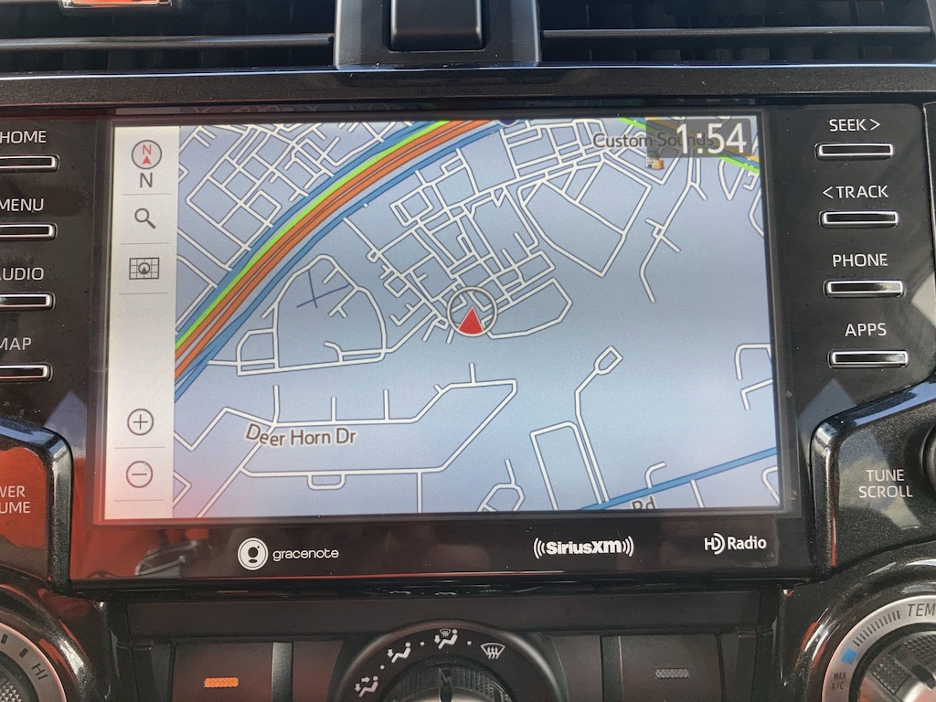 Features: Moonroof Package (Moonroof w/Tilt Up & Slide), Off Road Package (Black Roof Rails), Off Road Premium Package w/Softex (Body Color Heated Mirrors, Garage Door Opener, and Wireless Smart Entry Door Lock), Toyota Gold Certified Certified, 4WD, Black/Graphite w/Softex Synthetic Leather Seat Trim, 3.727 Axle Ratio, 4-Wheel Disc Brakes, 8 Speakers, ABS brakes, Air Conditioning, Alloy wheels, AM/FM radio: SiriusXM, Anti-whiplash front head restraints, Apple CarPlay/Android Auto, Auto High-beam Headlights, Auto-dimming Rear-View mirror, Brake assist, Bumpers: body-color, Compass, Driver door bin, Driver vanity mirror, Dual front impact airbags, Dual front side impact airbags, Electronic Stability Control, Emergency communication system: Safety Connect with 1-year trial, Exterior Parking Camera Rear, Front anti-roll bar, Front Bucket Seats, Front Center Armrest, Front fog lights, Front reading lights, Front wheel independent suspension, Garage door transmitter: HomeLink, Heated door mirrors, Heated Front Bucket Seats, Heated front seats, Illuminated entry, Knee airbag, Leather Shift Knob, Low tire pressure warning, Occupant sensing airbag, Outside temperature display, Overhead airbag, Overhead console, Panic alarm, Passenger door bin, Passenger vanity mirror, Power door mirrors, Power driver seat, Power passenger seat, Power steering, Power windows, Radio: Premium Audio w/Dynamic Navigation, Rear anti-roll bar, Rear seat center armrest, Rear window defroster, Rear window wiper, Remote keyless entry, Roof rack: rails only, Security system, Softex Synthetic Leather Seat Trim, Speed control, Speed-sensing steering, Split folding rear seat, Spoiler, Steering wheel mounted audio controls, Tachometer, Telescoping steering wheel, Tilt steering wheel, Traction control, Trip computer, Turn signal indicator mirrors, Variably intermittent wipers, and Wheels: 17" x 7.5" 7-Spoke Unique Off-Road Alloy.
