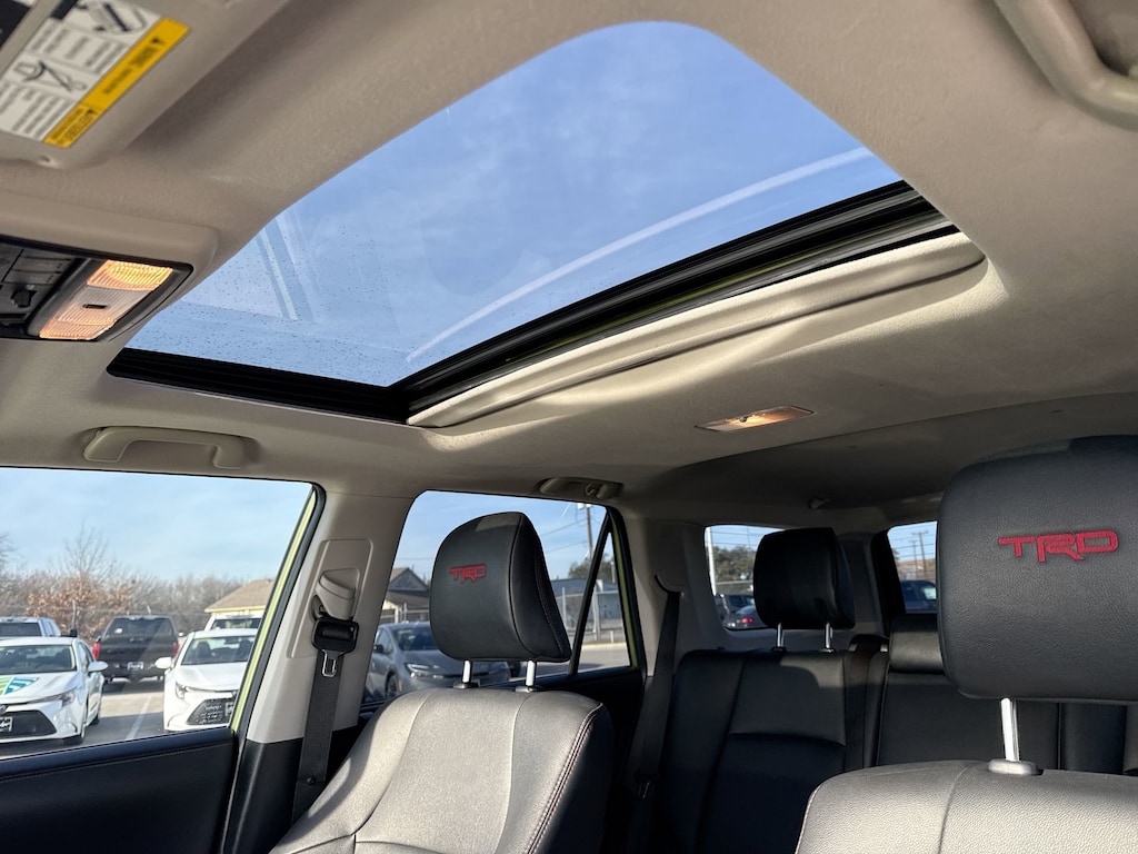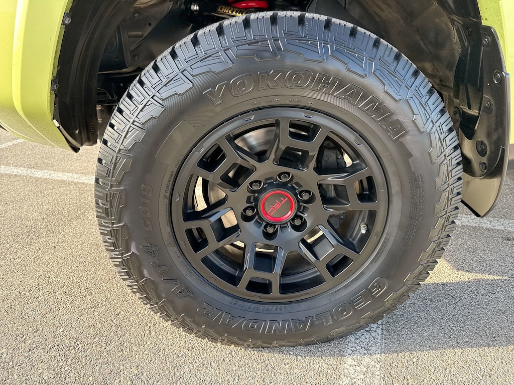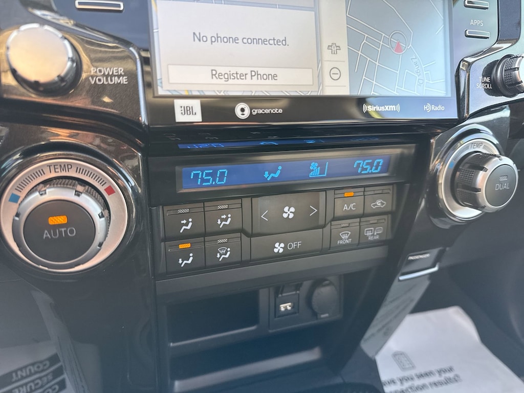 Features: TRD Pro Package (Black Lug Nuts, Blind Spot Monitor (BSM), Dual Zone Auto Climate Control, Fog Lights, Fox Shocks, Garage Door Opener, Multi-Terrain Back Monitor, Outside Rear View Mirror, Power Tilt & Slide Moonroof w/Sunshade, Roof Rack, TRD Badging, TRD Pro All Weather Floor Liner, TRD Pro Exhaust, TRD Shift Knob, and Wheel Locks), Toyota Gold Certified Certified, 4WD, Black/Graphite w/SofTex Seat Trim, 15 Speakers, 3.727 Axle Ratio, 4-Wheel Disc Brakes, ABS brakes, Air Conditioning, Alloy wheels, AM/FM radio: SiriusXM, Anti-whiplash front head restraints, Apple CarPlay/Android Auto, Auto High-beam Headlights, Auto-dimming Rear-View mirror, Automatic temperature control, Brake assist, Bumpers: body-color, Compass, Driver door bin, Driver vanity mirror, Dual front impact airbags, Dual front side impact airbags, Electronic Stability Control, Emergency communication system: Safety Connect with 1-year trial, Front anti-roll bar, Front Bucket Seats, Front Center Armrest, Front dual zone A/C, Front fog lights, Front reading lights, Front wheel independent suspension, Garage door transmitter: HomeLink, Heated door mirrors, Heated Front Bucket Seats, Heated front seats, Illuminated entry, Knee airbag, Leather Shift Knob, Low tire pressure warning, Navigation System, Occupant sensing airbag, Outside temperature display, Overhead airbag, Overhead console, Panic alarm, Passenger door bin, Passenger vanity mirror, Power door mirrors, Power driver seat, Power moonroof, Power passenger seat, Power steering, Power windows, Radio: Premium Audio w/JBL, Rear anti-roll bar, Rear seat center armrest, Rear window defroster, Rear window wiper, Remote keyless entry, Roof rack, Security system, SofTex Seat Trim, Speed control, Speed-sensing steering, Split folding rear seat, Spoiler, Steering wheel mounted audio controls, Tachometer, Telescoping steering wheel, Tilt steering wheel, Traction control, Trip computer, Turn signal indicator mirrors, Variably intermittent wipers, and Wheels: 17" Matte Black Flow-Formed TRD Alloy.