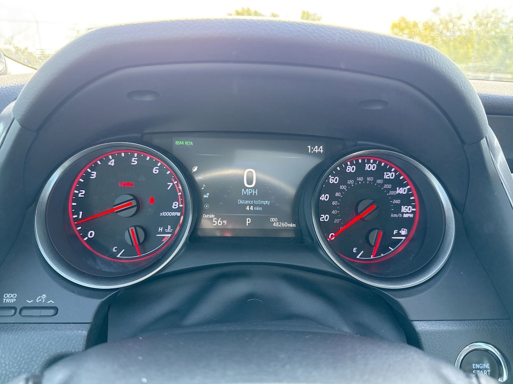 Features: Toyota Gold Certified Certified, Black w/Perforated Leather Seat Trim, ABS brakes, Active Cruise Control, Alloy wheels, Compass, Electronic Stability Control, Front dual zone A/C, Heated door mirrors, Heated front seats, Illuminated entry, Low tire pressure warning, Perforated Leather Seat Trim, Power moonroof, Remote keyless entry, Traction control, 4-Wheel Disc Brakes, 9 Speakers, Air Conditioning, AM/FM radio: SiriusXM, Apple CarPlay/Android Auto, Auto High-beam Headlights, Auto-dimming Rear-View mirror, Automatic temperature control, Brake assist, Bumpers: body-color, Delay-off headlights, Driver door bin, Driver vanity mirror, Dual front impact airbags, Dual front side impact airbags, Emergency communication system: Safety Connect with 1-year trial, Exterior Parking Camera Rear, Four wheel independent suspension, Front anti-roll bar, Front Bucket Seats, Front Center Armrest, Front reading lights, Fully automatic headlights, Garage door transmitter: HomeLink, Heads-Up Display, Knee airbag, Multi-Stage Heated Front Bucket Seats, Occupant sensing airbag, Outside temperature display, Overhead airbag, Overhead console, Panic alarm, Passenger door bin, Passenger vanity mirror, Power door mirrors, Power driver seat, Power passenger seat, Power steering, Power windows, Radio data system, Radio: AM/FM/HD Audio Plus w/JBL w/Clari-Fi, Rear anti-roll bar, Rear reading lights, Rear seat center armrest, Rear side impact airbag, Rear window defroster, Security system, Speed control, Speed-sensing steering, Split folding rear seat, Spoiler, Steering wheel mounted audio controls, Tachometer, Telescoping steering wheel, Tilt steering wheel, Trip computer, Turn signal indicator mirrors, Variably intermittent wipers, and Wheels: 8.0J x 19" Black Machined-Finish Alloy.