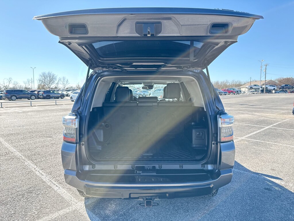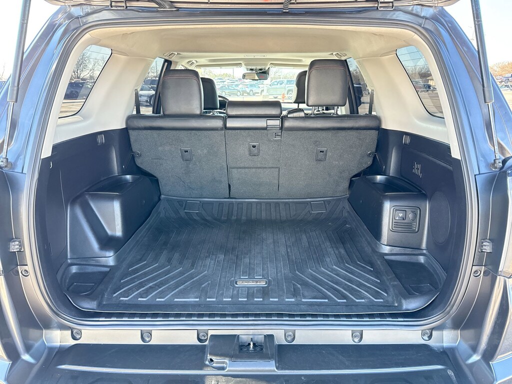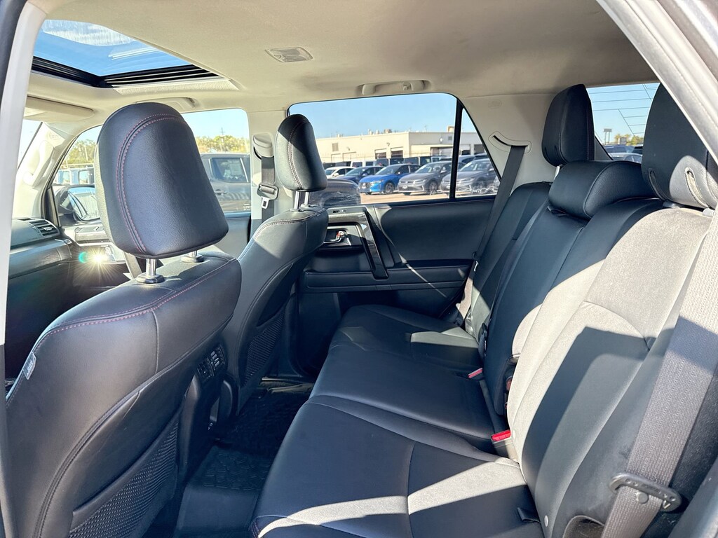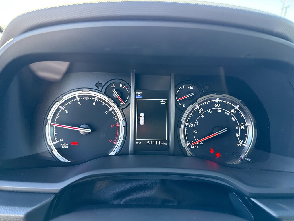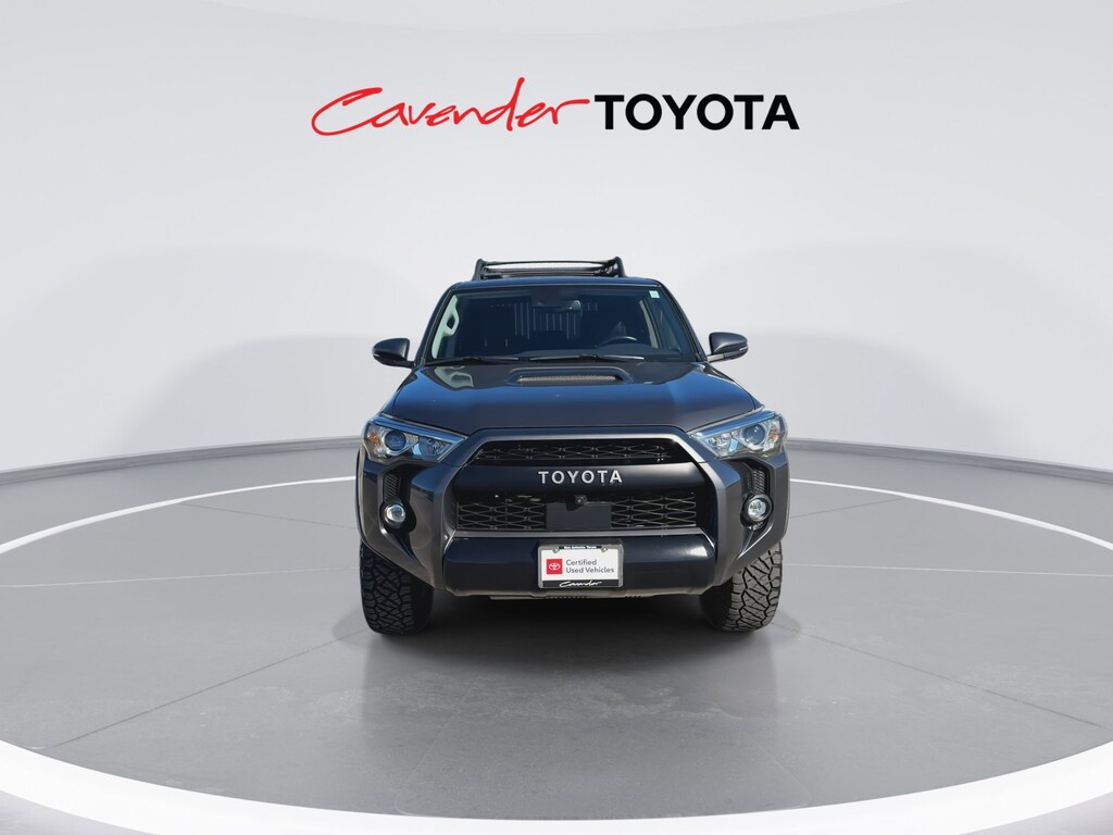 Features: TRD Pro Package (Black Lug Nuts, Dual Zone Auto Climate Control, Fog Lights, Fox Shocks, Garage Door Opener, Heated Outside Rear-View Mirrors, Moonroof w/Tilt Up & Slide, Multi-Terrain Back Monitor, Roof Rack, TRD Pro All Weather Floor Liner, TRD Pro Badging, TRD Pro Exhaust, TRD Shift Knob, and Wheel Locks), Toyota Gold Certified Certified, 4WD, Black/Graphite w/SofTex Seat Trim, 15 Speakers, 3.727 Axle Ratio, 4-Wheel Disc Brakes, ABS brakes, Air Conditioning, Alloy wheels, AM/FM radio: SiriusXM, Anti-whiplash front head restraints, Apple CarPlay/Android Auto, Auto High-beam Headlights, Auto-dimming Rear-View mirror, Automatic temperature control, Brake assist, Bumpers: body-color, Compass, Driver door bin, Driver vanity mirror, Dual front impact airbags, Dual front side impact airbags, Electronic Stability Control, Emergency communication system: Safety Connect (1-year trial), Front anti-roll bar, Front Bucket Seats, Front Center Armrest, Front dual zone A/C, Front fog lights, Front reading lights, Front wheel independent suspension, Garage door transmitter: HomeLink, Heated door mirrors, Heated Front Bucket Seats, Heated front seats, Illuminated entry, Knee airbag, Leather Shift Knob, Low tire pressure warning, Navigation System, Occupant sensing airbag, Outside temperature display, Overhead airbag, Overhead console, Panic alarm, Passenger door bin, Passenger vanity mirror, Power door mirrors, Power driver seat, Power moonroof, Power passenger seat, Power steering, Power windows, Radio: Premium Audio w/JBL, Rear anti-roll bar, Rear seat center armrest, Rear window defroster, Rear window wiper, Remote keyless entry, Roof rack, Security system, SofTex Seat Trim, Speed control, Speed-sensing steering, Split folding rear seat, Spoiler, Steering wheel mounted audio controls, Tachometer, Telescoping steering wheel, Tilt steering wheel, Traction control, Trip computer, Variably intermittent wipers, and Wheels: 17" Matte Black Flow-Formed TRD Alloy.