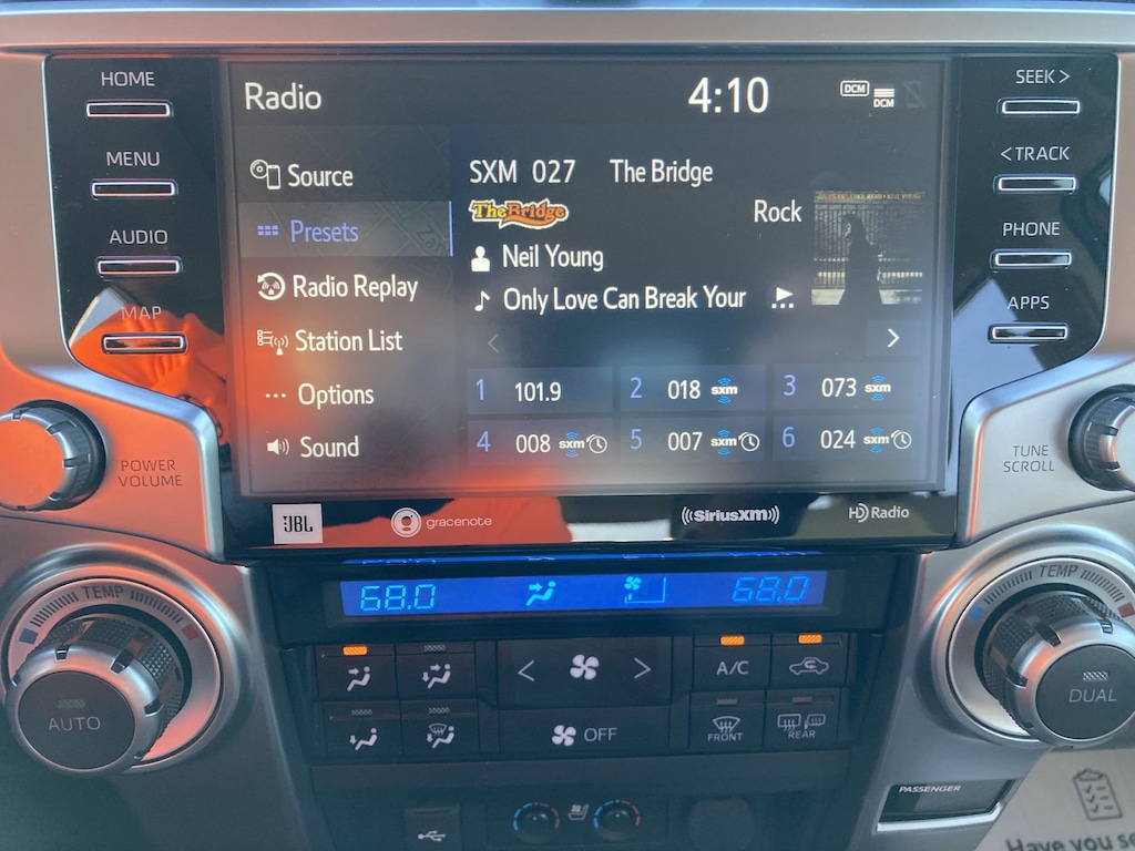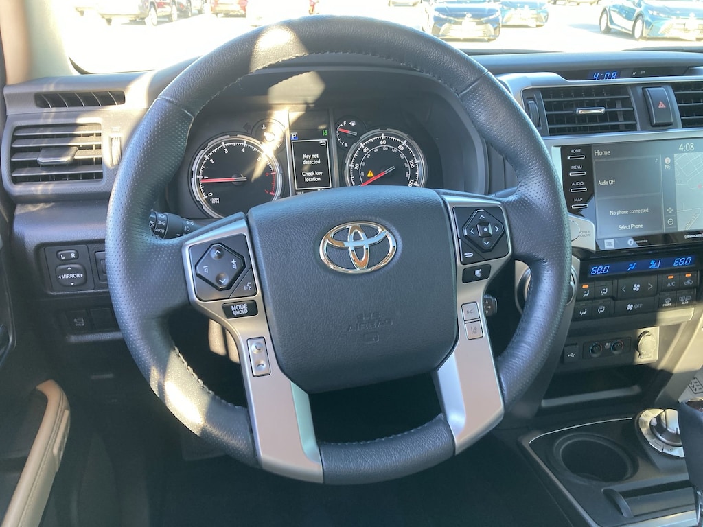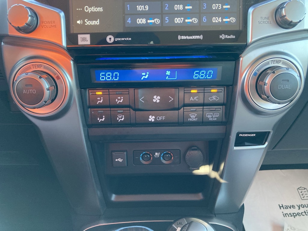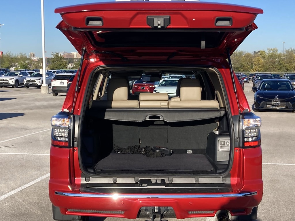 Features: Limited Package (Dual Zone Auto Climate Control, Garage Door Opener, Heated Outside Rear-View Mirrors, Moonroof w/Tilt Up & Slide, Panoramic Back Monitor, and Silver Roof Rails), Toyota Gold Certified Certified, 4WD, Sand Beige w/Leather Seat Trim, 15 Speakers, 3.727 Axle Ratio, 4-Wheel Disc Brakes, ABS brakes, Air Conditioning, Alloy wheels, AM/FM radio: SiriusXM, Anti-whiplash front head restraints, Apple CarPlay/Android Auto, Auto High-beam Headlights, Auto-dimming Rear-View mirror, Automatic temperature control, Brake assist, Bumpers: body-color, Carpet Floor Mats/Cargo Mat (PPO) (TMS), Compass, Delay-off headlights, Driver door bin, Driver vanity mirror, Dual front impact airbags, Dual front side impact airbags, Electronic Stability Control, Emergency communication system: Safety Connect (1-year trial), Front anti-roll bar, Front Bucket Seats, Front Center Armrest, Front dual zone A/C, Front fog lights, Front reading lights, Front wheel independent suspension, Fully automatic headlights, Garage door transmitter: HomeLink, Heated & Ventilated Front Bucket Seats, Heated door mirrors, Heated front seats, Illuminated entry, Knee airbag, Leather Seat Trim, Low tire pressure warning, Memory seat, Mudguards (PPO) (TMS), Navigation System, Occupant sensing airbag, Outside temperature display, Overhead airbag, Overhead console, Panic alarm, Passenger door bin, Passenger vanity mirror, Power door mirrors, Power driver seat, Power moonroof, Power passenger seat, Power steering, Power windows, Radio: Premium Audio w/JBL, Rear anti-roll bar, Rear seat center armrest, Rear window defroster, Rear window wiper, Remote keyless entry, Security system, Speed control, Speed-sensing steering, Split folding rear seat, Spoiler, Steering wheel mounted audio controls, Tachometer, Telescoping steering wheel, Tilt steering wheel, Traction control, Trip computer, Turn signal indicator mirrors, Variably intermittent wipers, Ventilated front seats, and Wheels: 20" Unique Dual 6-Spoke Alloy.