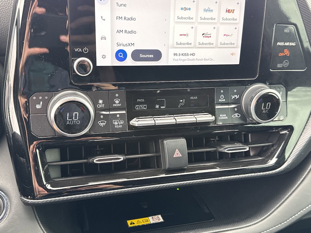Features: ABS brakes, Active Cruise Control, Alloy wheels, Electronic Stability Control, Front dual zone A/C, Heated door mirrors, Heated Front Bucket Seats, Heated front seats, Illuminated entry, Low tire pressure warning, Power Liftgate, Power moonroof, Remote keyless entry, Traction control, 3.329 Axle Ratio, 3rd row seats: split-bench, 4-Wheel Disc Brakes, 6 Speakers, Air Conditioning, AM/FM radio: SiriusXM, Apple CarPlay/Android Auto, Auto High-beam Headlights, Auto-dimming Rear-View mirror, Automatic temperature control, Bodyside moldings, Brake assist, Bumpers: body-color, Delay-off headlights, Driver door bin, Driver vanity mirror, Dual front impact airbags, Dual front side impact airbags, Emergency communication system: Safety Connect (up to 10-year trial subscription), Exterior Parking Camera Rear, Four wheel independent suspension, Front anti-roll bar, Front Bucket Seats, Front Center Armrest, Front fog lights, Front reading lights, Fully automatic headlights, Garage door transmitter: HomeLink, Knee airbag, Leather Shift Knob, Leather steering wheel, Mixed Media Seat Trim, Occupant sensing airbag, Outside temperature display, Overhead airbag, Overhead console, Panic alarm, Passenger door bin, Passenger vanity mirror, Power door mirrors, Power driver seat, Power passenger seat, Power steering, Power windows, Radio: 8" Toyota Audio Multimedia, Rear air conditioning, Rear anti-roll bar, Rear reading lights, Rear window defroster, Rear window wiper, Reclining 3rd row seat, Roof rack: rails only, Security system, Speed control, Speed-sensing steering, Split folding rear seat, Spoiler, Steering wheel mounted audio controls, Tachometer, Telescoping steering wheel, Tilt steering wheel, Trip computer, Turn signal indicator mirrors, Variably intermittent wipers, and Wheels: 20" Machined-Face Black Painted Alloy.
