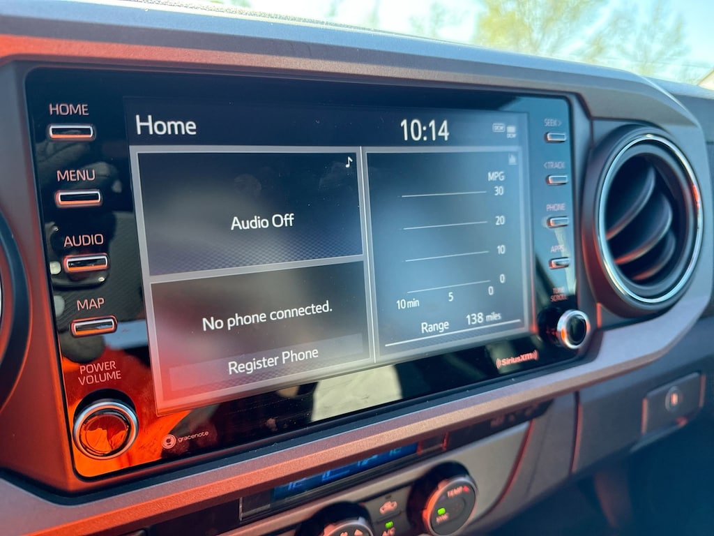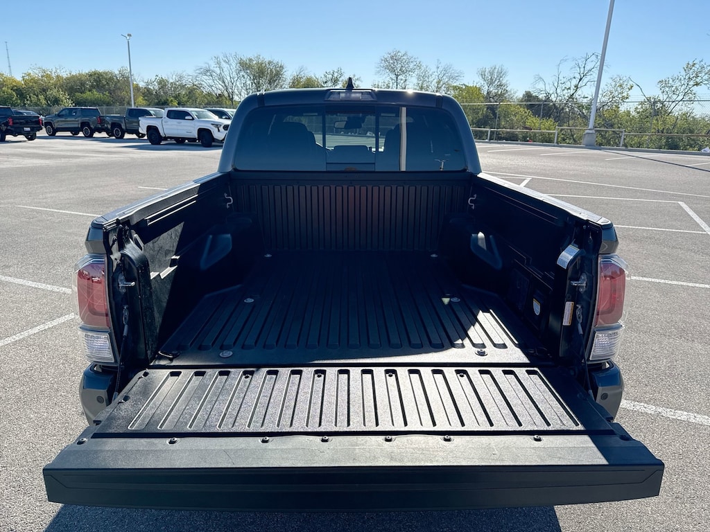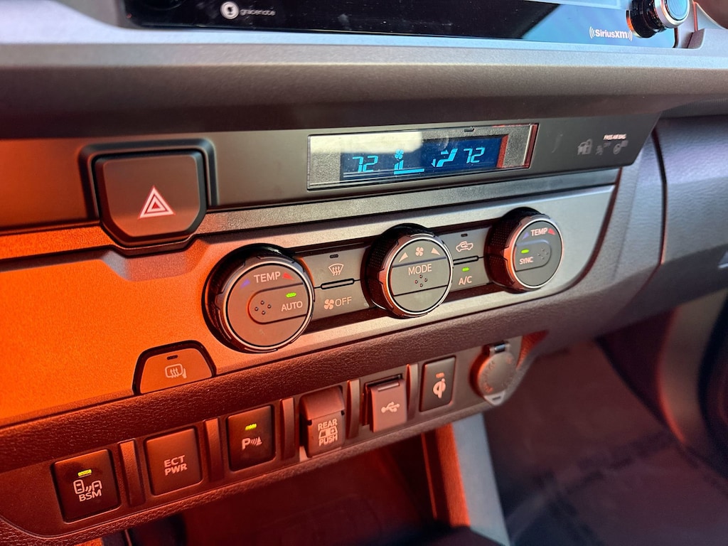 Features: Black Out Package (TMS), Technology Package (Blind Spot Monitor w/Rear Cross Traffic Alert, Mesh Front Grille, and Rear Parking Assist Sonar), TRD Sport Package (120V/400W Deck Mounted AC Power, Color-Keyed Rear Bumper, and Engine Immobilizer), Toyota Gold Certified Certified, ABS brakes, Active Cruise Control, Alloy wheels, Electronic Stability Control, Front dual zone A/C, Heated door mirrors, Illuminated entry, Low tire pressure warning, Remote keyless entry, Traction control, 17" Machined Alloy Wheels, 6 Speakers, Air Conditioning, AM/FM radio: SiriusXM, Anti-whiplash front head restraints, Apple CarPlay/Android Auto, Auto High-beam Headlights, Auto-dimming Rear-View mirror, Automatic temperature control, Axle Ratio: 3.91, Brake assist, Bumpers: body-color, Driver door bin, Dual front impact airbags, Dual front side impact airbags, Emergency communication system: Safety Connect (1-year trial), Exterior Parking Camera Rear, Fabric Seat Trim, Front anti-roll bar, Front Bucket Seats, Front Center Armrest, Front fog lights, Front reading lights, Front Seats, Front wheel independent suspension, Knee airbag, Leather Shift Knob, LED Daytime Running Lights & Fog Lights, LED Headlights w/Black Bezel LED Fog Lights, Occupant sensing airbag, Outside temperature display, Overhead airbag, Overhead console, Panic alarm, Passenger door bin, Power door mirrors, Power driver seat, Power steering, Power windows, Radio: Audio, Rear step bumper, Security system, Speed control, Speed-sensing steering, Split folding rear seat, Steering wheel mounted audio controls, Tachometer, Telescoping steering wheel, Tilt steering wheel, Trip computer, Turn signal indicator mirrors, and Variably intermittent wipers.