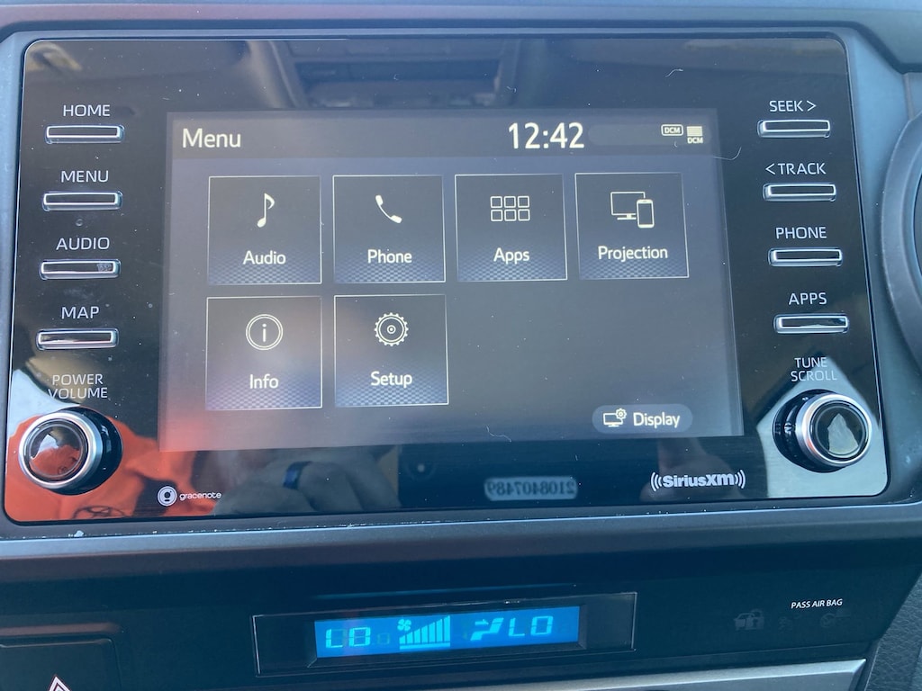 Features: Truck Exterior Package (TMS), Toyota Gold Certified Certified, 4WD, ABS brakes, Active Cruise Control, Electronic Stability Control, Front dual zone A/C, Heated door mirrors, Illuminated entry, Low tire pressure warning, Traction control, 16" Styled Steel Wheels, 6 Speakers, Air Conditioning, AM/FM radio: SiriusXM, Anti-whiplash front head restraints, Apple CarPlay/Android Auto, Auto High-beam Headlights, Automatic temperature control, Axle Ratio: 3.91, Brake assist, Bumpers: body-color, Driver door bin, Dual front impact airbags, Dual front side impact airbags, Emergency communication system: Safety Connect (1-year trial), Exterior Parking Camera Rear, Fabric Seat Trim, Front anti-roll bar, Front Bucket Seats, Front Center Armrest, Front reading lights, Front Seats, Front wheel independent suspension, Knee airbag, Occupant sensing airbag, Outside temperature display, Overhead airbag, Overhead console, Passenger door bin, Power door mirrors, Power steering, Power windows, Radio: Audio, Rear step bumper, Speed control, Speed-sensing steering, Split folding rear seat, Steering wheel mounted audio controls, Tachometer, Telescoping steering wheel, Tilt steering wheel, and Variably intermittent wipers.