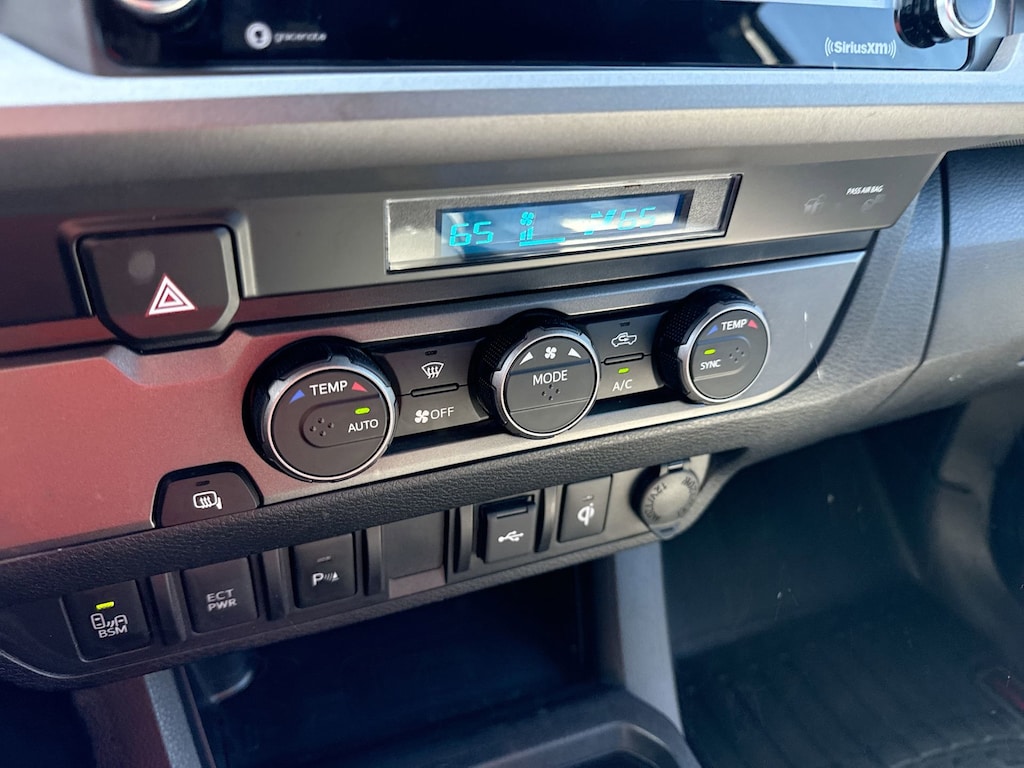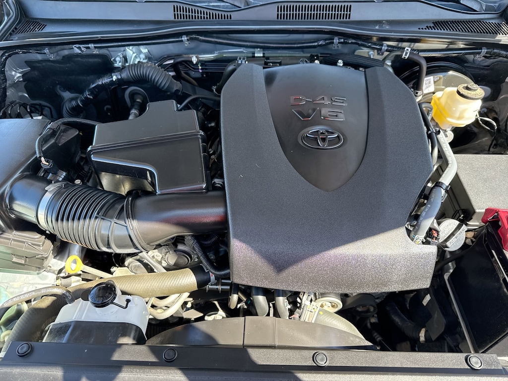 Features: Technology Package (Blind Spot Monitor w/Rear Cross Traffic Alert and Rear Parking Assist Sonar), TRD Sport Package (120V/400W Deck Mounted AC Power, Auto-Dimming Inside Rear-View Mirror, Color-Keyed Overfenders, Engine Immobilizer, Front Door Smart Key System w/Push Button Start, and Gray Grille w/Smoked Finish & Chrome Surround), Toyota Gold Certified Certified, ABS brakes, Active Cruise Control, Air Conditioning, Alloy wheels, Automatic temperature control, Electronic Stability Control, Front dual zone A/C, Heated door mirrors, Illuminated entry, Low tire pressure warning, Remote keyless entry, Traction control, 17" Machined Alloy Wheels, 6 Speakers, AM/FM radio: SiriusXM, Anti-whiplash front head restraints, Apple CarPlay/Android Auto, Auto High-beam Headlights, Auto-dimming Rear-View mirror, Axle Ratio: 3.91, Brake assist, Bumpers: body-color, Driver door bin, Dual front impact airbags, Dual front side impact airbags, Emergency communication system: Safety Connect (1-year trial), Exterior Parking Camera Rear, Fabric Seat Trim, Front anti-roll bar, Front Bucket Seats, Front Center Armrest, Front fog lights, Front reading lights, Front Seats, Front wheel independent suspension, Knee airbag, Leather Shift Knob, LED Daytime Running Lights & Fog Lights, LED Headlights w/Black Bezel LED Fog Lights, Occupant sensing airbag, Outside temperature display, Overhead airbag, Overhead console, Panic alarm, Passenger cancellable airbag, Passenger door bin, Power door mirrors, Power driver seat, Power steering, Power windows, Radio: Audio, Rear step bumper, Security system, Speed control, Speed-sensing steering, Steering wheel mounted audio controls, Tachometer, Telescoping steering wheel, Tilt steering wheel, Trip computer, Turn signal indicator mirrors, and Variably intermittent wipers.