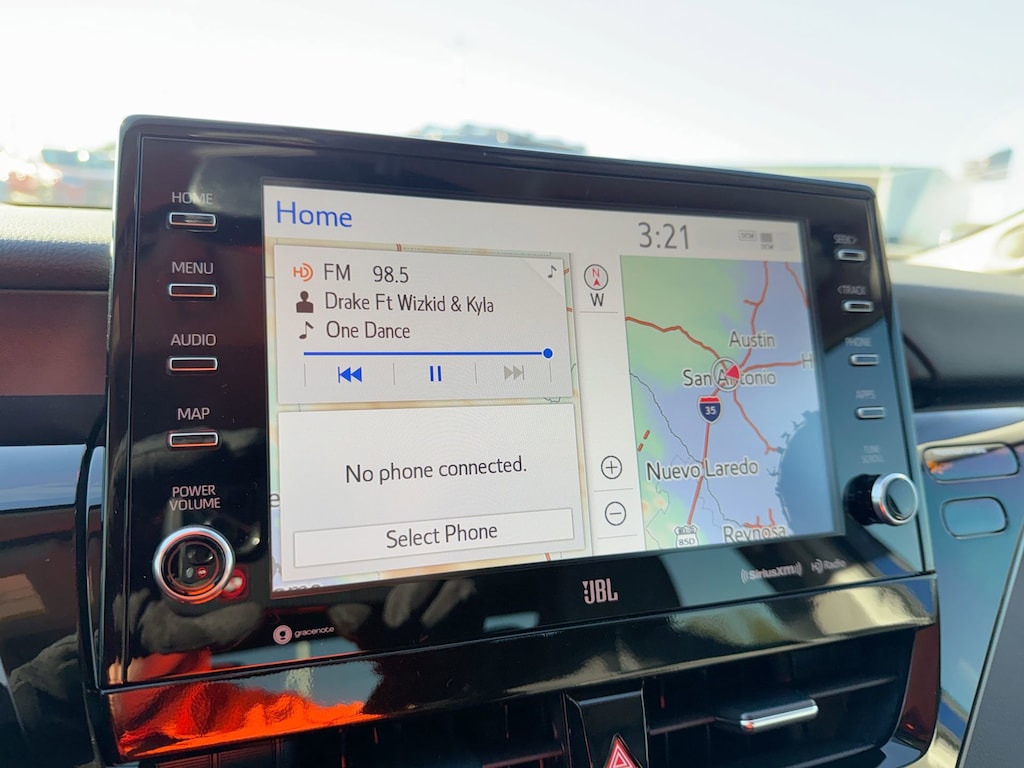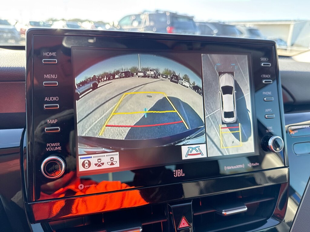 Features: Driver Assist Package (Bird's Eye View Camera, Intelligent Clearance Sonar, Multi-Stage Ventilated Front Seats, and Rear Cross Traffic Braking), Navigation Package (Radio: Premium Audio w/JBL), Toyota Gold Certified Certified, Black w/Perforated Leather Seat Trim, ABS brakes, Active Cruise Control, Alloy wheels, Compass, Electronic Stability Control, Front dual zone A/C, Heated door mirrors, Heated front seats, Illuminated entry, Low tire pressure warning, Perforated Leather Seat Trim, Power moonroof, Remote keyless entry, Traction control, 4-Wheel Disc Brakes, 9 Speakers, Air Conditioning, AM/FM radio: SiriusXM, Apple CarPlay/Android Auto, Auto High-beam Headlights, Auto-dimming Rear-View mirror, Automatic temperature control, Brake assist, Bumpers: body-color, Delay-off headlights, Driver door bin, Driver vanity mirror, Dual front impact airbags, Dual front side impact airbags, Emergency communication system: Safety Connect (1-year trial), Exterior Parking Camera Rear, Four wheel independent suspension, Front anti-roll bar, Front Bucket Seats, Front Center Armrest, Front reading lights, Fully automatic headlights, Garage door transmitter: HomeLink, Heads-Up Display, Knee airbag, Leather steering wheel, Multi-Stage Heated Front Bucket Seats, Occupant sensing airbag, Outside temperature display, Overhead airbag, Overhead console, Panic alarm, Passenger door bin, Passenger vanity mirror, Power door mirrors, Power driver seat, Power passenger seat, Power steering, Power windows, Radio data system, Radio: Audio Plus w/JBL, Rear anti-roll bar, Rear reading lights, Rear seat center armrest, Rear side impact airbag, Rear window defroster, Security system, Speed control, Speed-sensing steering, Split folding rear seat, Spoiler, Steering wheel mounted audio controls, Tachometer, Telescoping steering wheel, Tilt steering wheel, Trip computer, Turn signal indicator mirrors, Variably intermittent wipers, and Wheels: 19" x 8J Alloy.