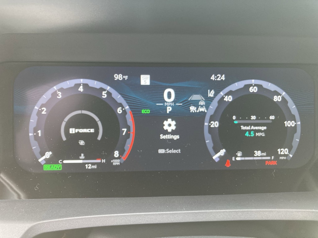 Features: TRD Off Road Base, Toyota Gold Certified Certified, 2.4L I4 FI Hybrid Turbocharged DOHC 16V, ABS brakes, Alloy wheels, Electronic Stability Control, Front dual zone A/C, Heated door mirrors, Illuminated entry, Low tire pressure warning, Remote keyless entry, Traction control, 4-Wheel Disc Brakes, Air Conditioning, AM/FM radio: SiriusXM, Anti-whiplash front head restraints, Apple CarPlay/Android Auto, Auto High-beam Headlights, Automatic temperature control, Brake assist, Bumpers: body-color, Driver door bin, Driver vanity mirror, Dual front impact airbags, Dual front side impact airbags, Emergency communication system: Safety Connect (1-year trial), Exterior Parking Camera Rear, Front anti-roll bar, Front Bucket Seats, Front Center Armrest, Front fog lights, Front reading lights, Front wheel independent suspension, Knee airbag, Leather Shift Knob, Leather steering wheel, Occupant sensing airbag, Outside temperature display, Overhead airbag, Overhead console, Panic alarm, Passenger door bin, Passenger vanity mirror, Power door mirrors, Power steering, Power windows, Rear anti-roll bar, Rear seat center armrest, Rear side impact airbag, Rear window defroster, Rear window wiper, Security system, Speed control, Speed-sensing steering, Split folding rear seat, Spoiler, Steering wheel mounted audio controls, Tachometer, Telescoping steering wheel, Tilt steering wheel, Trip computer, and Variably intermittent wipers.
