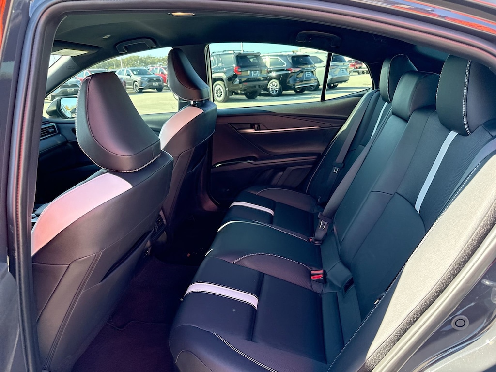 Features: Convenience Package (Auto-Dimming Rearview Mirror w/HomeLink and Smart Key System), Multimedia Upgrade Package (Radio: Toyota Audio Multimedia w/12.3" Touchscreen), Toyota Gold Certified Certified, 2.5L 4-Cylinder 16V DOHC, Black w/SofTex & Fabric Seat Trim, ABS brakes, Active Cruise Control, Alloy wheels, Electronic Stability Control, Front dual zone A/C, Heated door mirrors, Illuminated entry, Low tire pressure warning, Remote keyless entry, Traction control, 4-Wheel Disc Brakes, 6 Speakers, Air Conditioning, AM/FM radio: SiriusXM, Apple CarPlay/Android Auto, Auto High-beam Headlights, Automatic temperature control, Brake assist, Bumpers: body-color, Delay-off headlights, Driver door bin, Driver vanity mirror, Dual front impact airbags, Dual front side impact airbags, Emergency communication system: Safety Connect (up to 10-year trial subscription), Exterior Parking Camera Rear, Four wheel independent suspension, Front anti-roll bar, Front Bucket Seats, Front Center Armrest, Front reading lights, Fully automatic headlights, Knee airbag, Leather Shift Knob, Leather steering wheel, Occupant sensing airbag, Outside temperature display, Overhead airbag, Overhead console, Panic alarm, Passenger door bin, Passenger vanity mirror, Power door mirrors, Power driver seat, Power steering, Power windows, Radio data system, Radio: Toyota Audio Multimedia w/8" Touchscreen, Rear anti-roll bar, Rear reading lights, Rear seat center armrest, Rear side impact airbag, Rear window defroster, Security system, SofTex & Fabric Seat Trim, Speed control, Speed-sensing steering, Split folding rear seat, Spoiler, Steering wheel mounted audio controls, Telescoping steering wheel, Tilt steering wheel, Trip computer, Turn signal indicator mirrors, Variably intermittent wipers, and Wheels: 18" Black-Finished Alloy.
