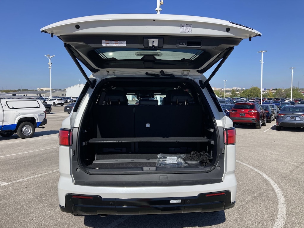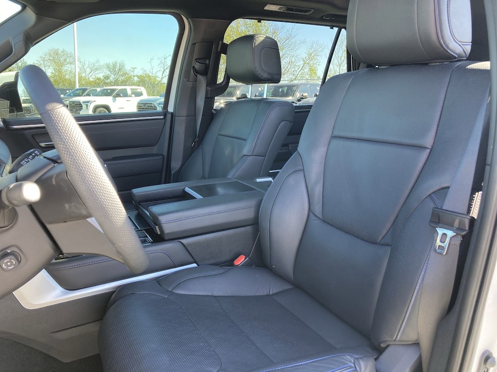 Features: Toyota Certified, V6 Hybrid, 10-Speed Automatic, 4WD, ABS brakes, Active Cruise Control, Alloy wheels, Compass, Electronic Stability Control, Front dual zone A/C, Heated & Ventilated Front Seats, Heated door mirrors, Heated front seats, Heated rear seats, Illuminated entry, Low tire pressure warning, Power Liftgate, Power moonroof, Premium Leather Seat Trim, Remote keyless entry, Traction control, 14 Speakers, 3rd row seats: split-bench, 4-Wheel Disc Brakes, Air Conditioning, AM/FM radio: SiriusXM, Anti-whiplash front head restraints, Apple CarPlay/Android Auto, Auto High-beam Headlights, Auto tilt-away steering wheel, Auto-dimming door mirrors, Auto-dimming Rear-View mirror, Automatic temperature control, Brake assist, Bumpers: body-color, Delay-off headlights, Driver door bin, Driver vanity mirror, Dual front impact airbags, Dual front side impact airbags, Emergency communication system: Safety Connect (10-year trial), Exterior Parking Camera Rear, Front anti-roll bar, Front Bucket Seats, Front Center Armrest w/Storage, Front fog lights, Front reading lights, Front wheel independent suspension, Fully automatic headlights, Garage door transmitter: HomeLink, Head Up Display (HUD), Headlight cleaning, Heated steering wheel, Knee airbag, Leather steering wheel, Memory seat, Navigation system: Drive Connect (1 year trial) includes Cloud Navigation with real time traffic and Google POI, Occupant sensing airbag, Outside temperature display, Overhead airbag, Overhead console, Panic alarm, Passenger door bin, Passenger vanity mirror, Power door mirrors, Power driver seat, Power passenger seat, Power steering, Power windows, Premium audio system: JBL, Radio: 14" Toyota Audio Multimedia w/JBL Prem Aud, Rain sensing wipers, Rear air conditioning, Rear reading lights, Rear seat center armrest, Rear window defroster, Rear window wiper, Reclining 3rd row seat, Security system, Speed control, Speed-sensing steering, Split folding rear seat, Spoiler, Steering wheel mounted audio controls, Tachometer, Telescoping steering wheel, Tilt steering wheel, Trip computer, Turn signal indicator mirrors, Variably intermittent wipers, Ventilated front seats, Ventilated rear seats, Voltmeter, and Wheels: 20" Machined-Finish Black Alloy.