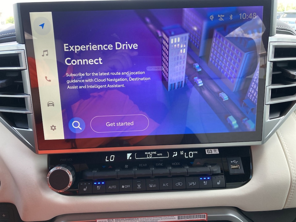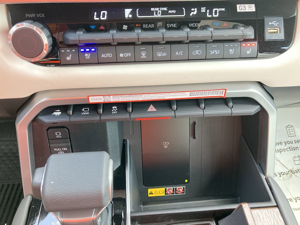 Features: Capstone Grade Package, Toyota Gold Certified Certified, V6 Hybrid, 10-Speed Automatic, 4WD, ABS brakes, Active Cruise Control, Alloy wheels, Compass, Electronic Stability Control, Front dual zone A/C, Heated & Ventilated Front Seats, Heated door mirrors, Heated front seats, Heated rear seats, Illuminated entry, Low tire pressure warning, Navigation System, Power Liftgate, Power moonroof, Remote keyless entry, Semi-Aniline Leather Seat Trim, Traction control, 14 Speakers, 3rd row seats: split-bench, 4-Wheel Disc Brakes, Air Conditioning, AM/FM radio: SiriusXM, Anti-whiplash front head restraints, Apple CarPlay/Android Auto, Auto High-beam Headlights, Auto tilt-away steering wheel, Auto-dimming door mirrors, Auto-dimming Rear-View mirror, Automatic temperature control, Brake assist, Bumpers: body-color, Delay-off headlights, Driver door bin, Driver vanity mirror, Dual front impact airbags, Dual front side impact airbags, Emergency communication system: Safety Connect (10-year trial), Exterior Parking Camera Rear, Front anti-roll bar, Front Bucket Seats, Front Center Armrest w/Storage, Front fog lights, Front reading lights, Front wheel independent suspension, Fully automatic headlights, Garage door transmitter: HomeLink, Genuine wood door panel insert, Headlight cleaning, Heads-Up Display, Heated steering wheel, Knee airbag, Leather Shift Knob, Leather steering wheel, Memory seat, Navigation system: Drive Connect (1 year trial) includes Cloud Navigation with real time traffic and Google POI, Occupant sensing airbag, Outside temperature display, Overhead airbag, Overhead console, Panic alarm, Passenger door bin, Passenger vanity mirror, Power door mirrors, Power driver seat, Power passenger seat, Power steering, Power windows, Premium audio system: JBL, Radio: 14" Toyota Audio Multimedia w/JBL Prem Aud, Rain sensing wipers, Rear air conditioning, Rear reading lights, Rear seat center armrest, Rear window defroster, Rear window wiper, Reclining 3rd row seat, Security system, Speed control, Speed-sensing steering, Split folding rear seat, Spoiler, Sport steering wheel, Steering wheel mounted audio controls, Tachometer, Telescoping steering wheel, Tilt steering wheel, Trip computer, Turn signal indicator mirrors, Variably intermittent wipers, Ventilated front seats, Ventilated rear seats, Voltmeter, and Wheels: 22" Dark Chrome Machined-Finish Alloy.
