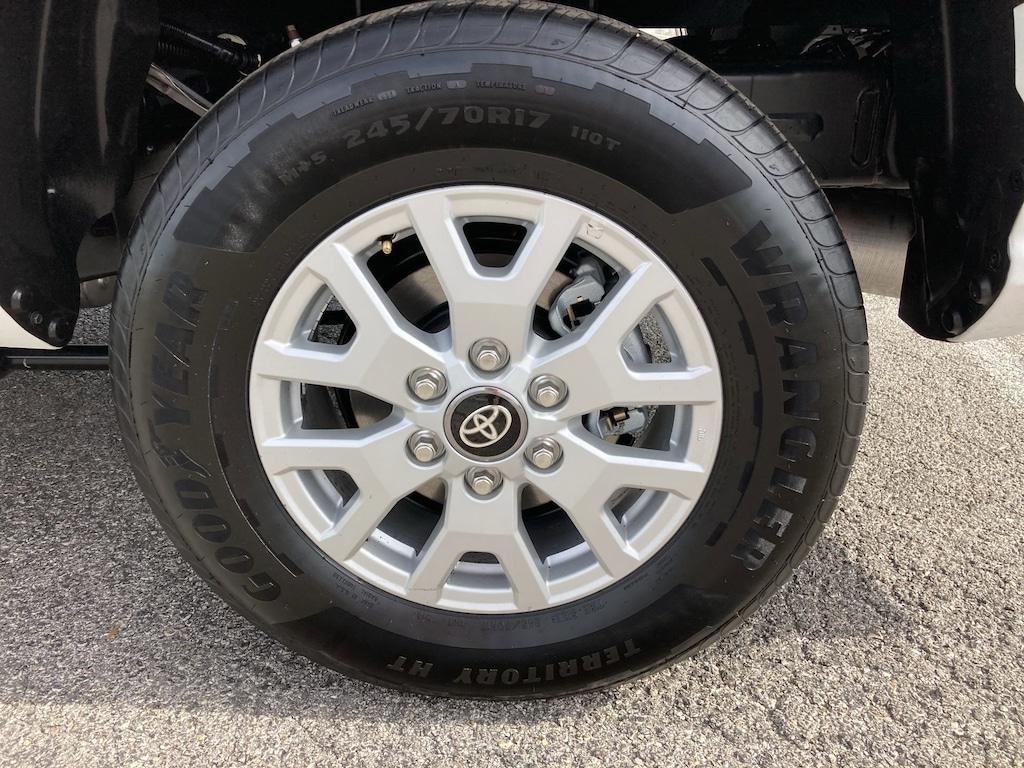 Features: SR5 Upgrade Heat (Heated Front Seats, Heated Leather-Trimmed Steering Wheel, HomeLink Universal Transceiver, Integrated Trailer Brake Controller, JBL Premium Audio, Power Horizontal Rear Window, Rear Underseat Storage Compartment, Smart Key w/Digital Key Technology, and TACOMA Stamped Easy Lower & Lift Tailgate), Toyota Gold Certified Certified, 4WD, ABS brakes, Alloy wheels, Electronic Stability Control, Heated door mirrors, Illuminated entry, Low tire pressure warning, Remote keyless entry, Traction control, 3.583 Axle Ratio, 4-Wheel Disc Brakes, 6 Speakers, Air Conditioning, AM/FM radio: SiriusXM, Anti-whiplash front head restraints, Apple CarPlay/Android Auto, Auto High-beam Headlights, Auto-dimming Rear-View mirror, Brake assist, Bumpers: body-color, Driver door bin, Dual front impact airbags, Dual front side impact airbags, Emergency communication system: Safety Connect (1-year trial), Exterior Parking Camera Rear, Fabric Seat Trim, Four wheel independent suspension, Front anti-roll bar, Front Bucket Seats, Front Center Armrest, Front fog lights, Front reading lights, Fully automatic headlights, Knee airbag, Occupant sensing airbag, Outside temperature display, Overhead airbag, Overhead console, Panic alarm, Passenger door bin, Power door mirrors, Power steering, Power windows, Radio: 8" Toyota Audio Multimedia, Rear step bumper, Rear window defroster, Speed control, Speed-sensing steering, Split folding rear seat, Steering wheel mounted audio controls, Tachometer, Telescoping steering wheel, Tilt steering wheel, Trip computer, Variably intermittent wipers, and Wheels: 17" Styled Alloy.