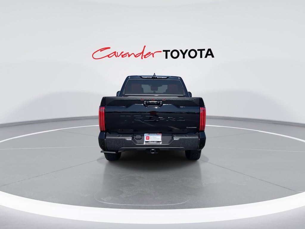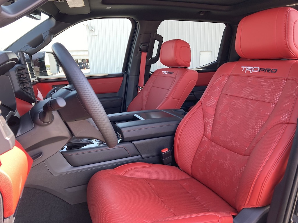 Cavender Certified Pre-Owned Program Built-in Benefits: Limited Powertrain Warranty for your peace of mind. Coverage includes components for engine, transmission and axles (for specific component coverage, please speak with a dealer representative). 24/7 Roadside Assistance â" No out-of-pocket costs for customers towed to our dealership (if located within 30 miles), lockout assistance, jump start, fuel and fluid delivery, flat tire changes, available 365 days/year, up to $100 maximum coverage per roadside incident. A Vehicle History Report is included with every Cavender Certified Pre-Owned vehicle to offer you Confidence knowing that the vehicle you are purchasing is right for you and the road ahead. (Limitation and exclusions apply. Please refer to your Limited Warranty Registration for full coverage information.) The Cavender Auto Family, proudly serving our communities since 1939, and we look forward to serving you! - Equipment: TRD Pro Package, TRD Pro Tow Package (Heated Power Sideview Mirrors w/LED Turn Signals), 3.4L V6, 12 Speakers, 3.31 Axle Ratio, 4-Wheel Disc Brakes, ABS brakes, Air Conditioning, Alloy wheels, AM/FM radio: SiriusXM, Apple CarPlay/Android Auto, Auto High-beam Headlights, Auto-dimming door mirrors, Auto-dimming Rear-View mirror, Automatic temperature control, Brake assist, Bumpers: body-color, Delay-off headlights, Driver door bin, Driver vanity mirror, Dual front impact airbags, Dual front side impact airbags, Electronic Stability Control, Emergency communication system: Safety Connect (10-year trial), Exterior Parking Camera Rear, Front anti-roll bar, Front Bucket Seats, Front Center Armrest, Front dual zone A/C, Front fog lights, Front reading lights, Front wheel independent suspension, Fully automatic headlights, Garage door transmitter: HomeLink, Heated & Ventilated Front Bucket Seats, Heated door mirrors, Heated front seats, Heated steering wheel, Illuminated entry, Knee airbag, Leather Shift Knob, Leather steering wheel, Low tire pressure warning, Memory seat, Navigation System, Occupant sensing airbag, Outside temperature display, Overhead airbag, Overhead console, Panic alarm, Passenger door bin, Passenger vanity mirror, Power door mirrors, Power driver seat, Power moonroof, Power passenger seat, Power steering, Power windows, Radio data system, Radio: Premium Audio w/JBL, Rear reading lights, Rear seat center armrest, Rear step bumper, Rear window defroster, Remote keyless entry, Security system, SofTex Seat Trim, Speed control, Speed-sensing steering, Split folding rear seat, Sport steering wheel, Steering wheel mounted audio controls, Tachometer, Telescoping steering wheel, Tilt steering wheel, Traction control, Trip computer, Turn signal indicator mirrors, Variably intermittent wipers, Ventilated front seats, Voltmeter, and Wheels: 18" x 8" Black BBS Forged Aluminum.