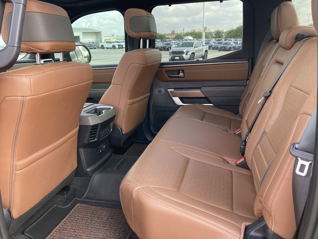Features: 1794 Grade Package, Toyota Gold Certified Certified, 3.4L V6, 10" Color Head-Up Display (HUD), 12 Speakers, 3.31 Axle Ratio, 4-Wheel Disc Brakes, ABS brakes, Air Conditioning, Alloy wheels, AM/FM radio: SiriusXM, Apple CarPlay/Android Auto, Auto High-beam Headlights, Auto-dimming door mirrors, Auto-dimming Rear-View mirror, Automatic temperature control, Brake assist, Bumpers: body-color, Delay-off headlights, Driver door bin, Driver vanity mirror, Dual front impact airbags, Dual front side impact airbags, Electronic Stability Control, Emergency communication system: Safety Connect (10-year trial), Exterior Parking Camera Rear, Front anti-roll bar, Front Bucket Seats, Front Center Armrest, Front dual zone A/C, Front fog lights, Front reading lights, Front wheel independent suspension, Fully automatic headlights, Garage door transmitter: HomeLink, Heated & Ventilated Front Bucket Seats, Heated door mirrors, Heated front seats, Heated rear seats, Heated steering wheel, Illuminated entry, Knee airbag, Leather Shift Knob, Leather steering wheel, Low tire pressure warning, Memory seat, Navigation System, Occupant sensing airbag, Outside temperature display, Overhead airbag, Overhead console, Panic alarm, Passenger door bin, Passenger vanity mirror, Power door mirrors, Power driver seat, Power moonroof, Power passenger seat, Power steering, Power windows, Premium Leather Seat Trim, Radio data system, Radio: Premium Audio w/JBL, Rain sensing wipers, Rear reading lights, Rear seat center armrest, Rear step bumper, Rear window defroster, Remote keyless entry, Security system, Speed control, Speed-sensing steering, Split folding rear seat, Steering wheel memory, Steering wheel mounted audio controls, Tachometer, Telescoping steering wheel, Tilt steering wheel, Traction control, Trip computer, Turn signal indicator mirrors, Variably intermittent wipers, Ventilated front seats, Ventilated rear seats, Voltmeter, and Wheels: 20" x 8" Machined-Finish Alloy.