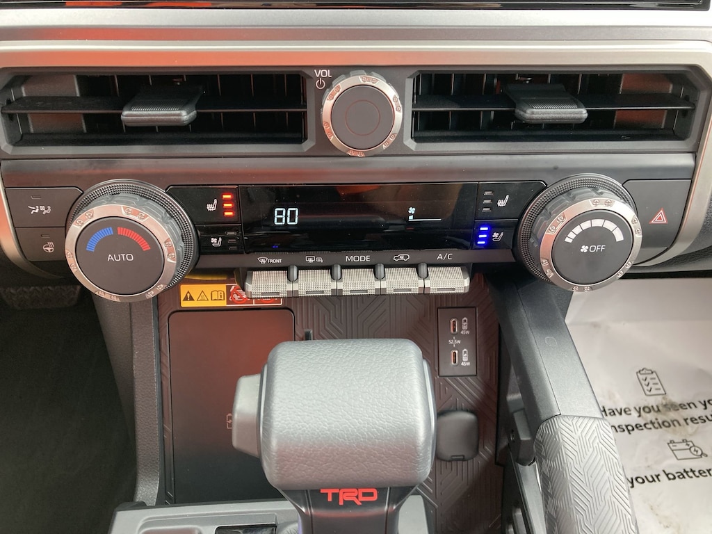 Features: Tow Technology Package (Inside Rear-View Mirror), TRD Offroad Premium Package, Toyota Gold Certified Certified, 2.4L 4-Cylinder, ABS brakes, Active Cruise Control, Alloy wheels, Electronic Stability Control, Front dual zone A/C, Heated door mirrors, Heated front seats, Illuminated entry, Low tire pressure warning, Navigation System, Remote keyless entry, Traction control, 15 Speakers, 4-Wheel Disc Brakes, Air Conditioning, AM/FM radio: SiriusXM, Anti-whiplash front head restraints, Apple CarPlay/Android Auto, Auto High-beam Headlights, Automatic temperature control, Brake assist, Bumpers: body-color, Driver door bin, Driver vanity mirror, Dual front impact airbags, Dual front side impact airbags, Emergency communication system: Safety Connect (1-year trial), Exterior Parking Camera Rear, Front anti-roll bar, Front Bucket Seats, Front Center Armrest, Front fog lights, Front reading lights, Front wheel independent suspension, Heated and Ventilated Front Bucket Seats, Heated steering wheel, Knee airbag, Leather Shift Knob, Leather steering wheel, Memory seat, Moonroof, Occupant sensing airbag, Outside temperature display, Overhead airbag, Overhead console, Panic alarm, Passenger door bin, Passenger vanity mirror, Power door mirrors, Power driver seat, Power passenger seat, Power steering, Power windows, Radio: 14" Audio, Rear anti-roll bar, Rear seat center armrest, Rear side impact airbag, Rear window defroster, Rear window wiper, Security system, SofTex Seat Trim, Speed control, Speed-sensing steering, Split folding rear seat, Spoiler, Steering wheel mounted audio controls, Tachometer, Telescoping steering wheel, Tilt steering wheel, Trip computer, Variably intermittent wipers, Ventilated front seats, and Wheels: 18" Matte-Black Painted Alloy.