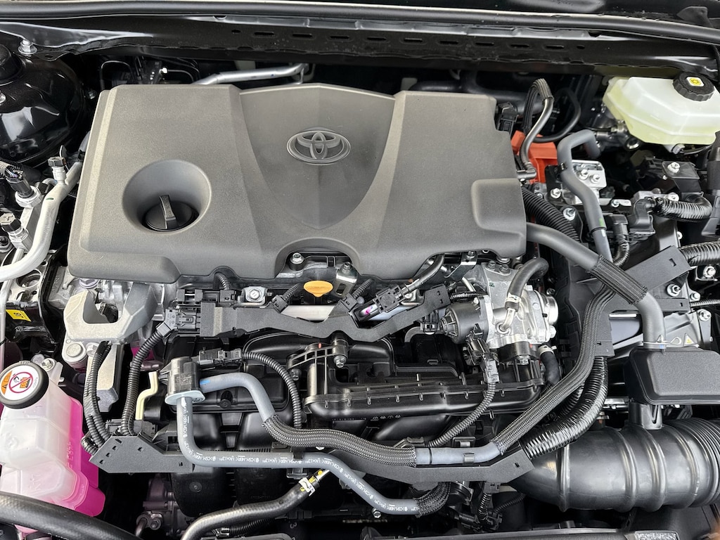 Features: Toyota Gold Certified Certified, Black w/SofTex and Fabric Seat Trim, ABS brakes, Active Cruise Control, Alloy wheels, Electronic Stability Control, Front dual zone A/C, Heated door mirrors, Illuminated entry, Low tire pressure warning, Remote keyless entry, Traction control, 4-Wheel Disc Brakes, 6 Speakers, Air Conditioning, AM/FM radio: SiriusXM, Apple CarPlay/Android Auto, Auto High-beam Headlights, Automatic temperature control, Brake assist, Bumpers: body-color, Delay-off headlights, Driver door bin, Driver vanity mirror, Dual front impact airbags, Dual front side impact airbags, Emergency communication system: Safety Connect (5-year trial), Exterior Parking Camera Rear, Four wheel independent suspension, Front anti-roll bar, Front Bucket Seats, Front Center Armrest, Front reading lights, Front Seats, Fully automatic headlights, Knee airbag, Leather Shift Knob, Leather steering wheel, Occupant sensing airbag, Outside temperature display, Overhead airbag, Overhead console, Panic alarm, Passenger door bin, Passenger vanity mirror, Power door mirrors, Power driver seat, Power steering, Power windows, Radio data system, Radio: 8" Toyota Audio Multimedia, Rear anti-roll bar, Rear reading lights, Rear seat center armrest, Rear window defroster, Security system, SofTex and Fabric Seat Trim, Speed control, Speed-sensing steering, Split folding rear seat, Spoiler, Steering wheel mounted audio controls, Telescoping steering wheel, Tilt steering wheel, Trip computer, Turn signal indicator mirrors, Variably intermittent wipers, and Wheels: 18" Multi-Spoke Black-Finished Alloy.