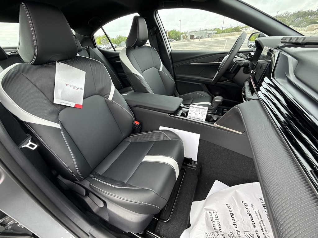 Features: Convenience Package (Auto-Dimming Rearview Mirror with HomeLink and Smart Key System on Front Doors), Black w/SofTex and Fabric Seat Trim, ABS brakes, Active Cruise Control, Alloy wheels, Electronic Stability Control, Front dual zone A/C, Heated door mirrors, Illuminated entry, Low tire pressure warning, Remote keyless entry, Traction control, 4-Wheel Disc Brakes, 6 Speakers, Air Conditioning, AM/FM radio: SiriusXM, Apple CarPlay/Android Auto, Auto High-beam Headlights, Automatic temperature control, Brake assist, Bumpers: body-color, Delay-off headlights, Driver door bin, Driver vanity mirror, Dual front impact airbags, Dual front side impact airbags, Emergency communication system: Safety Connect (5-year trial), Exterior Parking Camera Rear, Four wheel independent suspension, Front anti-roll bar, Front Bucket Seats, Front Center Armrest, Front reading lights, Front Seats, Fully automatic headlights, Knee airbag, Leather Shift Knob, Leather steering wheel, Occupant sensing airbag, Outside temperature display, Overhead airbag, Overhead console, Panic alarm, Passenger door bin, Passenger vanity mirror, Power door mirrors, Power driver seat, Power steering, Power windows, Radio data system, Radio: 8" Toyota Audio Multimedia, Rear anti-roll bar, Rear reading lights, Rear seat center armrest, Rear window defroster, Security system, SofTex and Fabric Seat Trim, Speed control, Speed-sensing steering, Split folding rear seat, Spoiler, Steering wheel mounted audio controls, Telescoping steering wheel, Tilt steering wheel, Trip computer, Turn signal indicator mirrors, Variably intermittent wipers, and Wheels: 18" Multi-Spoke Black-Finished Alloy.