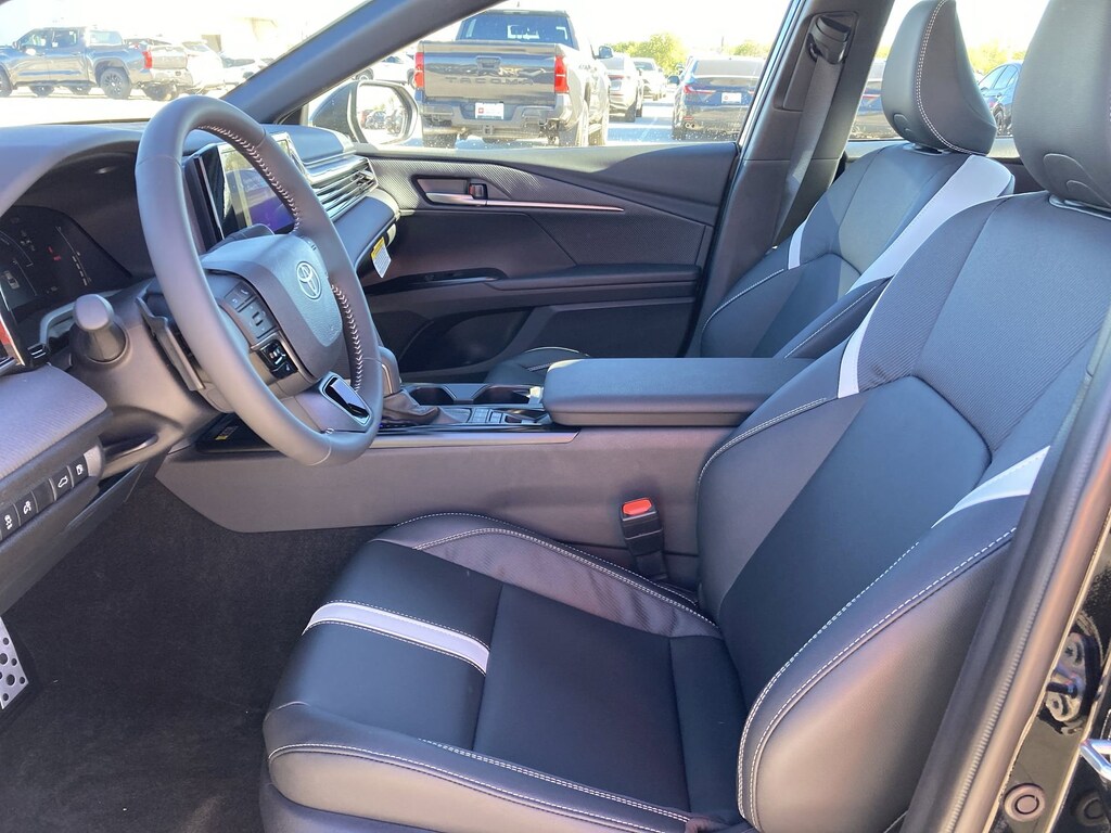 Features: Toyota Gold Certified Certified, Black w/Fabric Seat Trim, ABS brakes, Active Cruise Control, Alloy wheels, Electronic Stability Control, Front dual zone A/C, Heated door mirrors, Illuminated entry, Low tire pressure warning, Remote keyless entry, Traction control, 4-Wheel Disc Brakes, 6 Speakers, Air Conditioning, AM/FM radio: SiriusXM, Apple CarPlay/Android Auto, Auto High-beam Headlights, Automatic temperature control, Brake assist, Bumpers: body-color, Delay-off headlights, Driver door bin, Driver vanity mirror, Dual front impact airbags, Dual front side impact airbags, Emergency communication system: Safety Connect (5-year trial), Exterior Parking Camera Rear, Four wheel independent suspension, Front anti-roll bar, Front Bucket Seats, Front Center Armrest, Front reading lights, Front Seats, Fully automatic headlights, Knee airbag, Leather Shift Knob, Leather steering wheel, Occupant sensing airbag, Outside temperature display, Overhead airbag, Overhead console, Panic alarm, Passenger door bin, Passenger vanity mirror, Power door mirrors, Power driver seat, Power steering, Power windows, Radio data system, Radio: 8" Toyota Audio Multimedia, Rear anti-roll bar, Rear reading lights, Rear seat center armrest, Rear window defroster, Security system, Speed control, Speed-sensing steering, Split folding rear seat, Spoiler, Steering wheel mounted audio controls, Telescoping steering wheel, Tilt steering wheel, Trip computer, Turn signal indicator mirrors, Variably intermittent wipers, and Wheels: 18" Multi-Spoke Black-Finished Alloy.