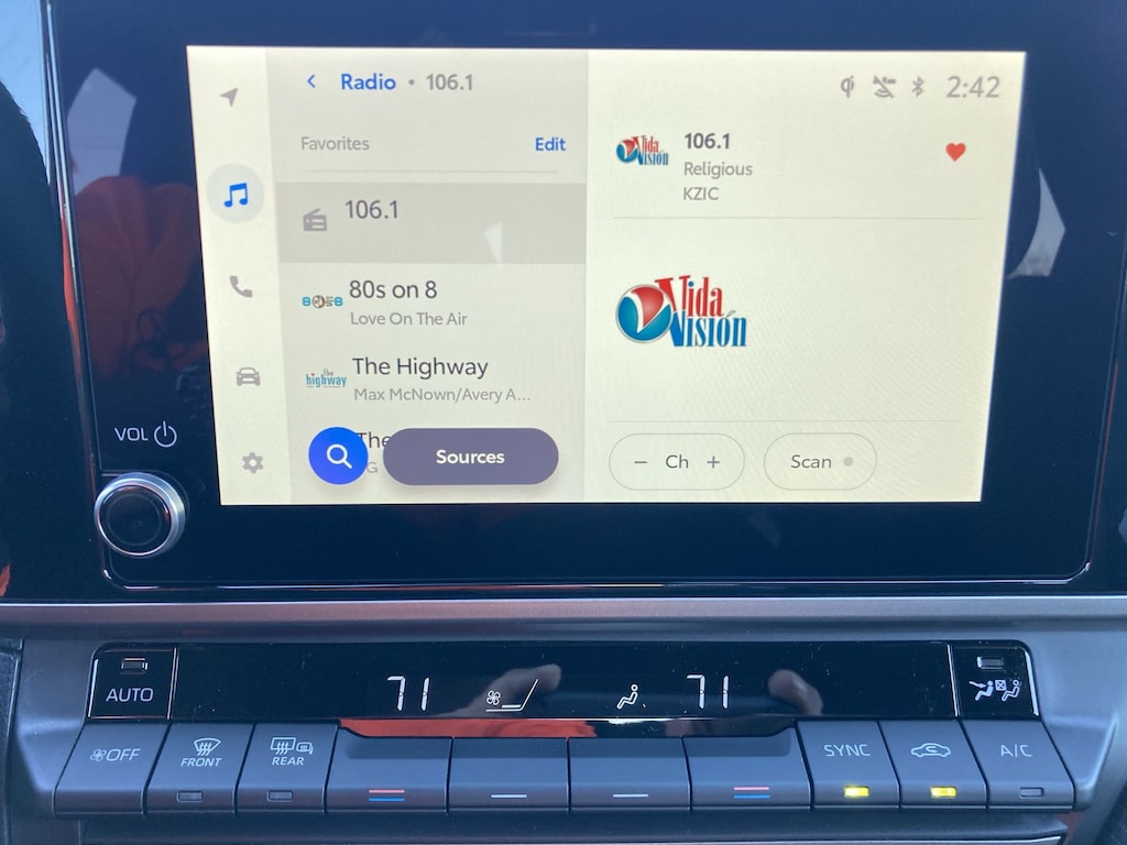 Features: Toyota Gold Certified Certified, Black w/SofTex and Fabric Seat Trim, ABS brakes, Active Cruise Control, Alloy wheels, Electronic Stability Control, Front dual zone A/C, Heated door mirrors, Illuminated entry, Low tire pressure warning, Remote keyless entry, Traction control, 4-Wheel Disc Brakes, 6 Speakers, Air Conditioning, AM/FM radio: SiriusXM, Apple CarPlay/Android Auto, Auto High-beam Headlights, Automatic temperature control, Brake assist, Bumpers: body-color, Delay-off headlights, Driver door bin, Driver vanity mirror, Dual front impact airbags, Dual front side impact airbags, Emergency communication system: Safety Connect (5-year trial), Exterior Parking Camera Rear, Four wheel independent suspension, Front anti-roll bar, Front Bucket Seats, Front Center Armrest, Front reading lights, Front Seats, Fully automatic headlights, Knee airbag, Leather Shift Knob, Leather steering wheel, Occupant sensing airbag, Outside temperature display, Overhead airbag, Overhead console, Panic alarm, Passenger door bin, Passenger vanity mirror, Power door mirrors, Power driver seat, Power steering, Power windows, Radio data system, Radio: 8" Toyota Audio Multimedia, Rear anti-roll bar, Rear reading lights, Rear seat center armrest, Rear window defroster, Security system, SofTex and Fabric Seat Trim, Speed control, Speed-sensing steering, Split folding rear seat, Spoiler, Steering wheel mounted audio controls, Telescoping steering wheel, Tilt steering wheel, Trip computer, Turn signal indicator mirrors, Variably intermittent wipers, and Wheels: 18" Multi-Spoke Black-Finished Alloy.