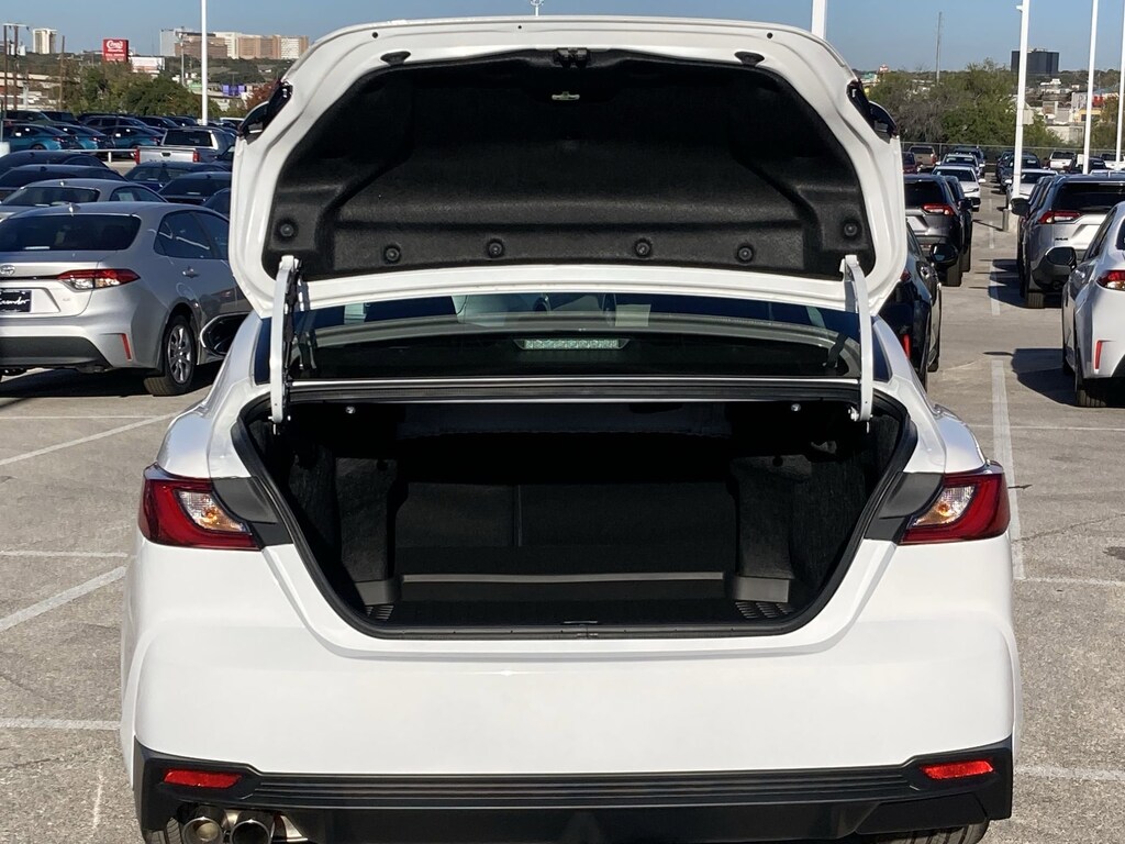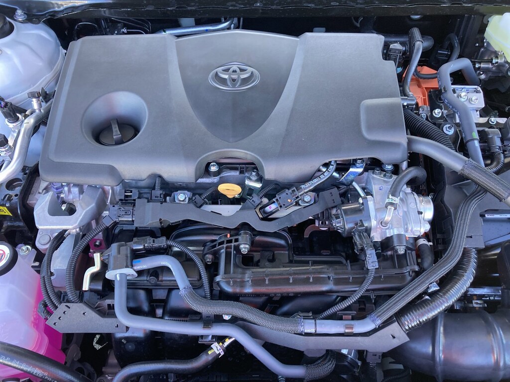 Features: Toyota Gold Certified Certified, Black w/SofTex & Fabric Seat Trim, ABS brakes, Active Cruise Control, Alloy wheels, Electronic Stability Control, Front dual zone A/C, Heated door mirrors, Illuminated entry, Low tire pressure warning, Remote keyless entry, Traction control, 4-Wheel Disc Brakes, 6 Speakers, Air Conditioning, AM/FM radio: SiriusXM, Apple CarPlay/Android Auto, Auto High-beam Headlights, Automatic temperature control, Brake assist, Bumpers: body-color, Delay-off headlights, Driver door bin, Driver vanity mirror, Dual front impact airbags, Dual front side impact airbags, Emergency communication system: Safety Connect (5-year trial), Exterior Parking Camera Rear, Four wheel independent suspension, Front anti-roll bar, Front Bucket Seats, Front Center Armrest, Front reading lights, Front Seats, Fully automatic headlights, Knee airbag, Leather Shift Knob, Leather steering wheel, Occupant sensing airbag, Outside temperature display, Overhead airbag, Overhead console, Panic alarm, Passenger door bin, Passenger vanity mirror, Power door mirrors, Power driver seat, Power steering, Power windows, Radio data system, Radio: 8" Toyota Audio Multimedia, Rear anti-roll bar, Rear reading lights, Rear seat center armrest, Rear window defroster, Security system, Speed control, Speed-sensing steering, Split folding rear seat, Spoiler, Steering wheel mounted audio controls, Telescoping steering wheel, Tilt steering wheel, Trip computer, Turn signal indicator mirrors, Variably intermittent wipers, and Wheels: 18" Multi-Spoke Black-Finished Alloy.