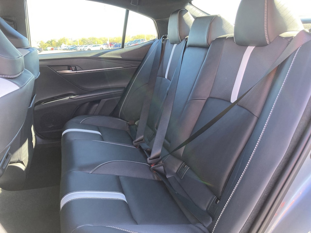 Features: Toyota Gold Certified Certified, Black w/SofTex & Fabric Seat Trim, ABS brakes, Active Cruise Control, Alloy wheels, Electronic Stability Control, Front dual zone A/C, Heated door mirrors, Illuminated entry, Low tire pressure warning, Remote keyless entry, Traction control, 4-Wheel Disc Brakes, 6 Speakers, Air Conditioning, AM/FM radio: SiriusXM, Apple CarPlay/Android Auto, Auto High-beam Headlights, Automatic temperature control, Brake assist, Bumpers: body-color, Delay-off headlights, Driver door bin, Driver vanity mirror, Dual front impact airbags, Dual front side impact airbags, Emergency communication system: Safety Connect (5-year trial), Exterior Parking Camera Rear, Four wheel independent suspension, Front anti-roll bar, Front Bucket Seats, Front Center Armrest, Front reading lights, Front Seats, Fully automatic headlights, Knee airbag, Leather Shift Knob, Leather steering wheel, Occupant sensing airbag, Outside temperature display, Overhead airbag, Overhead console, Panic alarm, Passenger door bin, Passenger vanity mirror, Power door mirrors, Power driver seat, Power steering, Power windows, Radio data system, Radio: 8" Toyota Audio Multimedia, Rear anti-roll bar, Rear reading lights, Rear seat center armrest, Rear window defroster, Security system, Speed control, Speed-sensing steering, Split folding rear seat, Spoiler, Steering wheel mounted audio controls, Telescoping steering wheel, Tilt steering wheel, Trip computer, Turn signal indicator mirrors, Variably intermittent wipers, and Wheels: 18" Multi-Spoke Black-Finished Alloy.