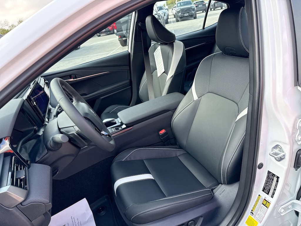 Features: Convenience Package (Auto-Dimming Rearview Mirror w/HomeLink and Smart Key System on Front Doors), Multimedia Upgrade Package (Radio: 12.3" Toyota Audio Multimedia), Preferred Package 2 w/All Weather Floor Mats (TMS), Toyota Gold Certified Certified, Black w/SofTex & Fabric Seat Trim, ABS brakes, Active Cruise Control, Alloy wheels, Electronic Stability Control, Front dual zone A/C, Heated door mirrors, Illuminated entry, Low tire pressure warning, Remote keyless entry, Traction control, 4-Wheel Disc Brakes, 6 Speakers, Air Conditioning, AM/FM radio: SiriusXM, Apple CarPlay/Android Auto, Auto High-beam Headlights, Automatic temperature control, Brake assist, Bumpers: body-color, Delay-off headlights, Driver door bin, Driver vanity mirror, Dual front impact airbags, Dual front side impact airbags, Emergency communication system: Safety Connect (5-year trial), Exterior Parking Camera Rear, Four wheel independent suspension, Front anti-roll bar, Front Bucket Seats, Front Center Armrest, Front reading lights, Front Seats, Fully automatic headlights, Knee airbag, Leather Shift Knob, Leather steering wheel, Occupant sensing airbag, Outside temperature display, Overhead airbag, Overhead console, Panic alarm, Passenger door bin, Passenger vanity mirror, Power door mirrors, Power driver seat, Power steering, Power windows, Radio data system, Radio: 8" Toyota Audio Multimedia, Rear anti-roll bar, Rear reading lights, Rear seat center armrest, Rear window defroster, Security system, SofTex & Fabric Seat Trim, Speed control, Speed-sensing steering, Split folding rear seat, Spoiler, Steering wheel mounted audio controls, Telescoping steering wheel, Tilt steering wheel, Trip computer, Turn signal indicator mirrors, Variably intermittent wipers, and Wheels: 18" Multi-Spoke Black-Finished Alloy.