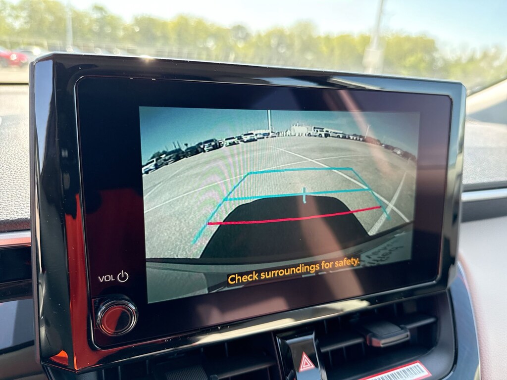Features: ABS brakes, Active Cruise Control, Electronic Stability Control, Heated door mirrors, Illuminated entry, Low tire pressure warning, Remote keyless entry, Traction control, 4-Wheel Disc Brakes, 6 Speakers, Air Conditioning, AM/FM radio: SiriusXM, Auto High-beam Headlights, Brake assist, Bumpers: body-color, Delay-off headlights, Driver door bin, Driver vanity mirror, Dual front impact airbags, Dual front side impact airbags, Emergency communication system: Safety Connect (10-year trial), Exterior Parking Camera Rear, Fabric Seat Trim, Front anti-roll bar, Front Bucket Seats, Front Center Armrest, Front reading lights, Front wheel independent suspension, Knee airbag, Occupant sensing airbag, Outside temperature display, Overhead airbag, Panic alarm, Passenger door bin, Passenger vanity mirror, Power door mirrors, Power steering, Power windows, Radio data system, Radio: 8" Toyota Audio Multimedia w/6 Speakers, Rear anti-roll bar, Rear side impact airbag, Rear window defroster, Speed control, Split folding rear seat, Spoiler, Steering wheel mounted audio controls, Tachometer, Telescoping steering wheel, Tilt steering wheel, and Trip computer.