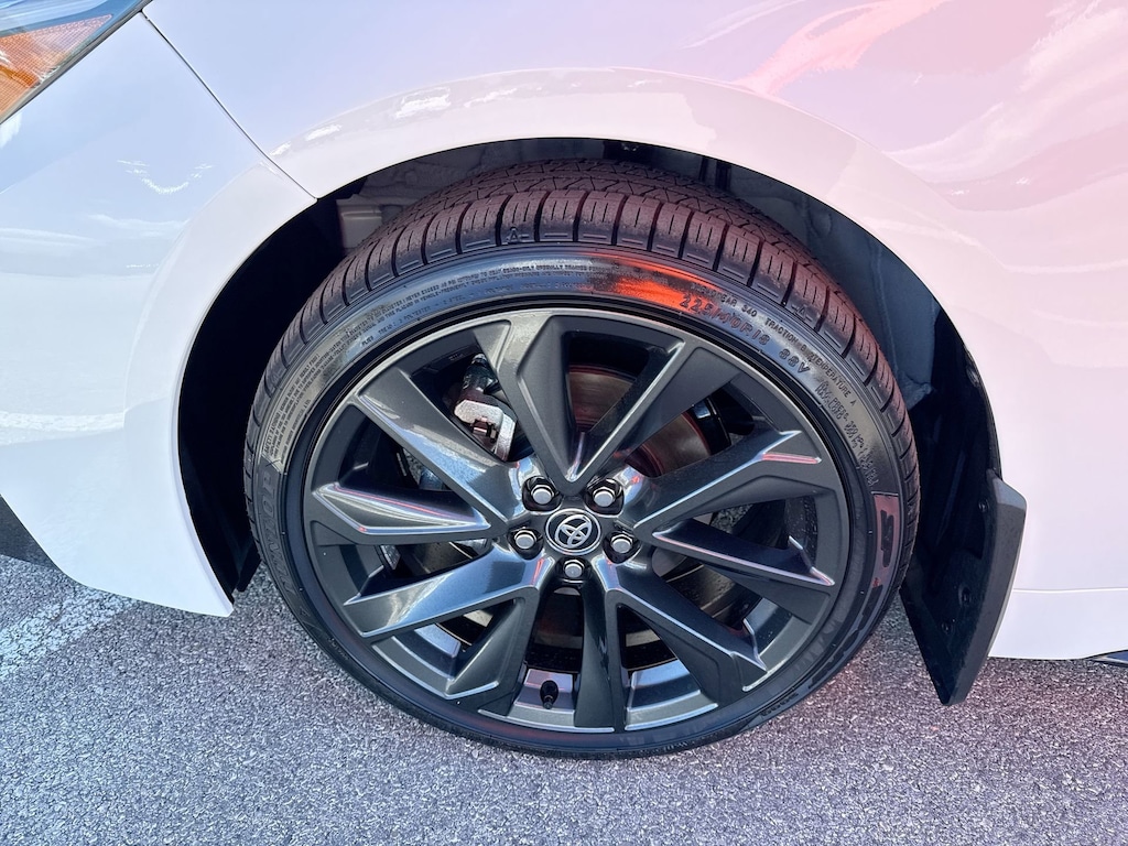 Features: ABS brakes, Active Cruise Control, Alloy wheels, Electronic Stability Control, Heated door mirrors, Illuminated entry, Low tire pressure warning, Remote keyless entry, Traction control, 4-Wheel Disc Brakes, 6 Speakers, Air Conditioning, AM/FM radio: SiriusXM, Apple CarPlay/Android Auto, Auto High-beam Headlights, Automatic temperature control, Brake assist, Bumpers: body-color, Delay-off headlights, Driver door bin, Driver vanity mirror, Dual front impact airbags, Dual front side impact airbags, Emergency communication system: Safety Connect (up to 10-year trial subscription), Exterior Parking Camera Rear, Fabric Seat Trim, Four wheel independent suspension, Front anti-roll bar, Front Bucket Seats, Front Center Armrest, Front reading lights, Front Sport Seats, Fully automatic headlights, Knee airbag, Leather steering wheel, Occupant sensing airbag, Outside temperature display, Overhead airbag, Panic alarm, Passenger door bin, Passenger vanity mirror, Power door mirrors, Power steering, Power windows, Radio data system, Radio: 8" Toyota Audio Multimedia, Rear anti-roll bar, Rear seat center armrest, Rear side impact airbag, Rear window defroster, Speed control, Split folding rear seat, Spoiler, Steering wheel mounted audio controls, Tachometer, Telescoping steering wheel, Tilt steering wheel, Trip computer, Turn signal indicator mirrors, Variably intermittent wipers, and Wheels: 18" Alloy w/Graphite-Colored Finish.