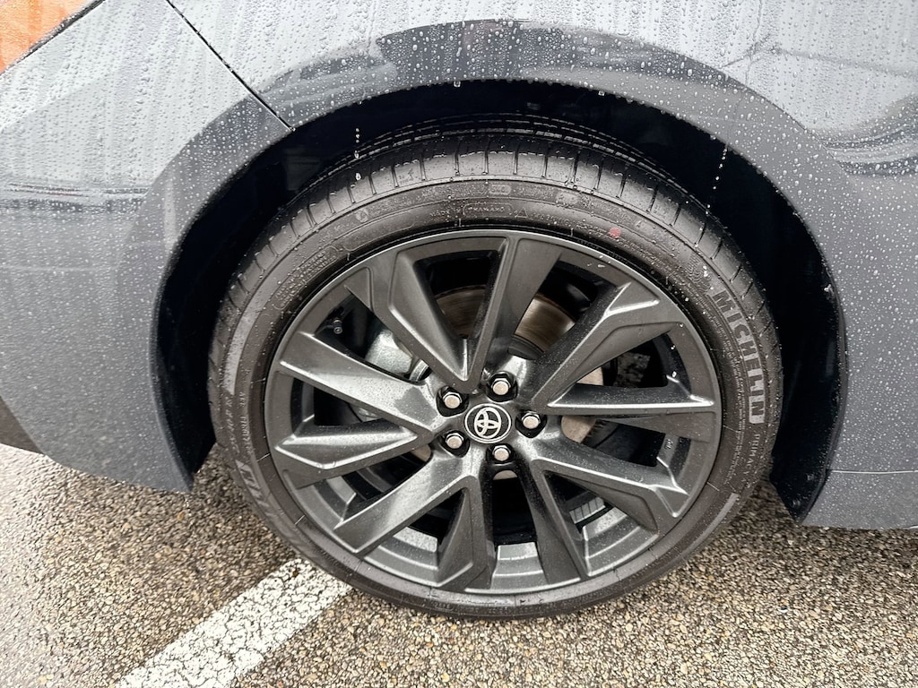 Features: Toyota Gold Certified Certified, ABS brakes, Active Cruise Control, Alloy wheels, Electronic Stability Control, Heated door mirrors, Illuminated entry, Low tire pressure warning, Remote keyless entry, Traction control, 4-Wheel Disc Brakes, 6 Speakers, Air Conditioning, AM/FM radio: SiriusXM, Apple CarPlay/Android Auto, Auto High-beam Headlights, Automatic temperature control, Brake assist, Bumpers: body-color, Delay-off headlights, Driver door bin, Driver vanity mirror, Dual front impact airbags, Dual front side impact airbags, Emergency communication system: Safety Connect (up to 10-year trial subscription), Exterior Parking Camera Rear, Fabric Seat Trim, Four wheel independent suspension, Front anti-roll bar, Front Bucket Seats, Front Center Armrest, Front reading lights, Front Sport Seats, Fully automatic headlights, Knee airbag, Leather steering wheel, Occupant sensing airbag, Outside temperature display, Overhead airbag, Panic alarm, Passenger door bin, Passenger vanity mirror, Power door mirrors, Power steering, Power windows, Radio data system, Radio: 8" Toyota Audio Multimedia, Rear anti-roll bar, Rear seat center armrest, Rear side impact airbag, Rear window defroster, Speed control, Split folding rear seat, Spoiler, Steering wheel mounted audio controls, Tachometer, Telescoping steering wheel, Tilt steering wheel, Trip computer, Turn signal indicator mirrors, and Variably intermittent wipers.