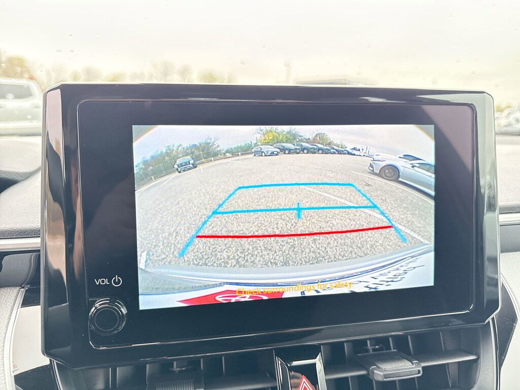 Features: Toyota Gold Certified Certified, 4-Wheel Disc Brakes, 6 Speakers, ABS brakes, Air Conditioning, Alloy wheels, AM/FM radio: SiriusXM, Apple CarPlay/Android Auto, Auto High-beam Headlights, Automatic temperature control, Brake assist, Bumpers: body-color, Delay-off headlights, Driver door bin, Driver vanity mirror, Dual front impact airbags, Dual front side impact airbags, Electronic Stability Control, Emergency communication system: Safety Connect (up to 10-year trial subscription), Exterior Parking Camera Rear, Fabric Seat Trim, Four wheel independent suspension, Front anti-roll bar, Front Bucket Seats, Front Center Armrest, Front reading lights, Front Sport Seats, Fully automatic headlights, Heated door mirrors, Illuminated entry, Knee airbag, Leather steering wheel, Low tire pressure warning, Occupant sensing airbag, Outside temperature display, Overhead airbag, Panic alarm, Passenger door bin, Passenger vanity mirror, Power door mirrors, Power steering, Power windows, Radio data system, Radio: 8" Toyota Audio Multimedia, Rear anti-roll bar, Rear seat center armrest, Rear side impact airbag, Rear window defroster, Remote keyless entry, Speed control, Split folding rear seat, Spoiler, Steering wheel mounted audio controls, Tachometer, Telescoping steering wheel, Tilt steering wheel, Traction control, Trip computer, Turn signal indicator mirrors, and Variably intermittent wipers.