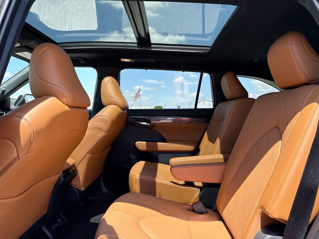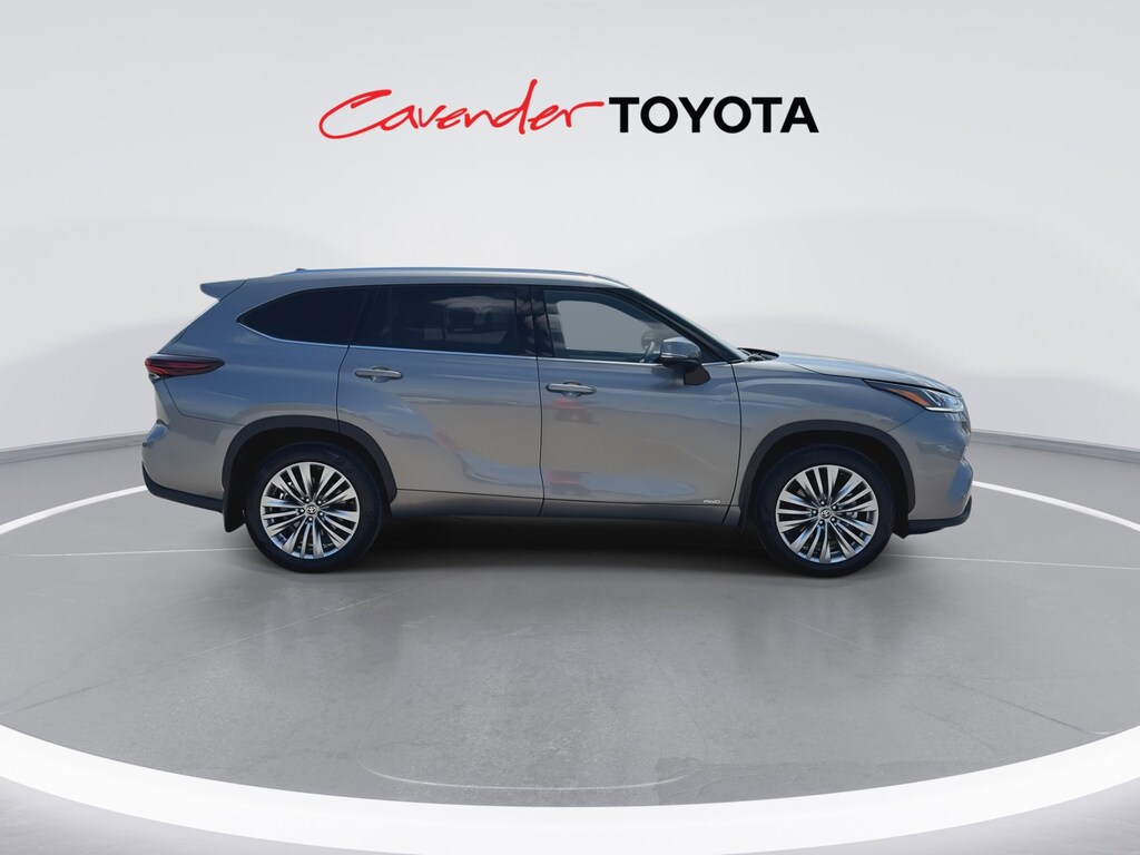 Features: Platinum Package, Toyota Gold Certified Certified, 2.5L I4 PDI Hybrid DOHC 16V LEV3-SULEV30, 11 Speakers, 20" Alloy Wheels, 3rd row seats: split-bench, 4-Wheel Disc Brakes, ABS brakes, Air Conditioning, Alloy wheels, AM/FM radio: SiriusXM, Apple CarPlay/Android Auto, Auto High-beam Headlights, Auto-dimming Rear-View mirror, Automatic temperature control, Brake assist, Bumpers: body-color, Delay-off headlights, Driver door bin, Driver vanity mirror, Dual front impact airbags, Dual front side impact airbags, Electronic Stability Control, Emergency communication system: Safety Connect (up to 10-year trial subscription), Exterior Parking Camera Rear, Four wheel independent suspension, Front anti-roll bar, Front Bucket Seats, Front Center Armrest, Front dual zone A/C, Front fog lights, Front reading lights, Fully automatic headlights, Garage door transmitter: HomeLink, Heads-Up Display, Heated and Ventilated Front Captain Seats, Heated door mirrors, Heated front seats, Heated rear seats, Heated steering wheel, Illuminated entry, Knee airbag, Leather Seat Trim, Leather Shift Knob, Leather steering wheel, Low tire pressure warning, Memory seat, Navigation system: Drive Connect Cloud Navigation (1-year trial subscription), Occupant sensing airbag, Outside temperature display, Overhead airbag, Overhead console, Panic alarm, Passenger door bin, Passenger vanity mirror, Power door mirrors, Power driver seat, Power Liftgate, Power moonroof, Power passenger seat, Power steering, Power windows, Radio: 12.3" Toyota Audio Multimedia with JBL Premium Audio, Rain sensing wipers, Rear air conditioning, Rear anti-roll bar, Rear reading lights, Rear window defroster, Rear window wiper, Reclining 3rd row seat, Remote keyless entry, Security system, Speed control, Speed-sensing steering, Split folding rear seat, Spoiler, Steering wheel mounted audio controls, Telescoping steering wheel, Tilt steering wheel, Traction control, Trip computer, Turn signal indicator mirrors, Variably intermittent wipers, and Ventilated front seats.