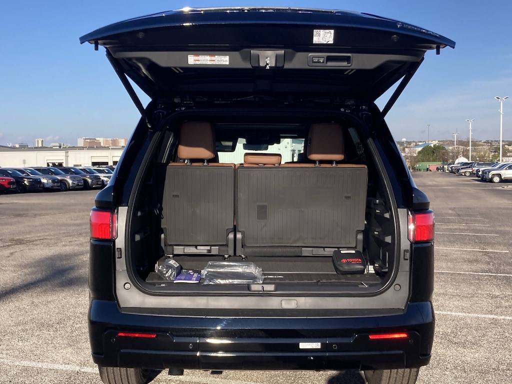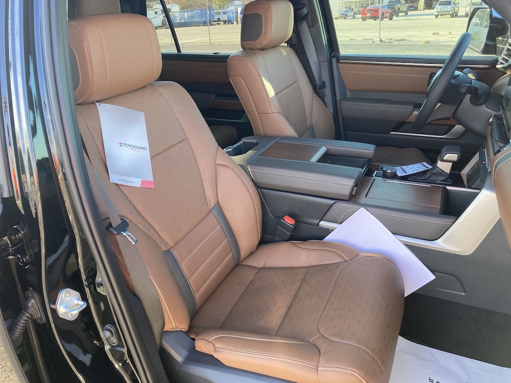 Features: 1794 Grade Package, Toyota Gold Certified Certified, V6 Hybrid, 10-Speed Automatic, 4WD, ABS brakes, Active Cruise Control, Alloy wheels, Compass, Electronic Stability Control, Front dual zone A/C, Heated door mirrors, Heated front seats, Heated rear seats, Illuminated entry, Low tire pressure warning, Power Liftgate, Power moonroof, Premium Leather Seat Trim, Remote keyless entry, Traction control, 14 Speakers, 20" Alloy Wheels, 3rd row seats: split-bench, 4-Wheel Disc Brakes, Air Conditioning, AM/FM radio: SiriusXM, Anti-whiplash front head restraints, Apple CarPlay/Android Auto, Auto High-beam Headlights, Auto tilt-away steering wheel, Auto-dimming door mirrors, Auto-dimming Rear-View mirror, Automatic temperature control, Brake assist, Bumpers: body-color, Delay-off headlights, Driver door bin, Driver vanity mirror, Dual front impact airbags, Dual front side impact airbags, Emergency communication system: Safety Connect (10-year trial), Exterior Parking Camera Rear, Front anti-roll bar, Front Bucket Seats, Front Center Armrest w/Storage, Front fog lights, Front reading lights, Front wheel independent suspension, Fully automatic headlights, Garage door transmitter: HomeLink, Genuine wood door panel insert, Head Up Display (HUD), Headlight cleaning, Heated and Ventilated Front Seats, Heated steering wheel, Knee airbag, Leather Shift Knob, Leather steering wheel, Memory seat, Navigation system: Drive Connect (1 year trial) includes Cloud Navigation with real time traffic and Google POI, Occupant sensing airbag, Outside temperature display, Overhead airbag, Overhead console, Panic alarm, Passenger door bin, Passenger vanity mirror, Power door mirrors, Power driver seat, Power passenger seat, Power steering, Power windows, Premium audio system: JBL, Radio: 14" Toyota Audio Multimedia with JBL Premium Audio, Rain sensing wipers, Rear air conditioning, Rear reading lights, Rear seat center armrest, Rear window defroster, Rear window wiper, Reclining 3rd row seat, Security system, Speed control, Speed-sensing steering, Split folding rear seat, Spoiler, Sport steering wheel, Steering wheel mounted audio controls, Tachometer, Telescoping steering wheel, Tilt steering wheel, Trip computer, Turn signal indicator mirrors, Variably intermittent wipers, Ventilated front seats, Ventilated rear seats, and Voltmeter.