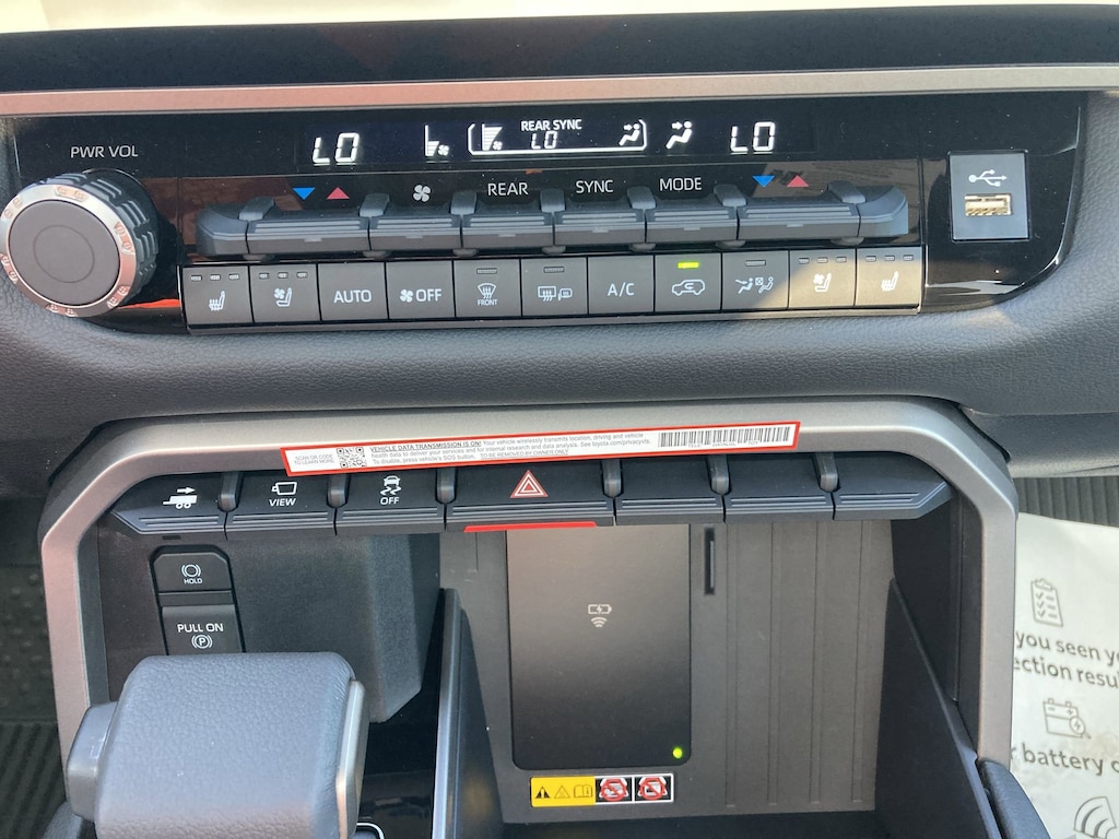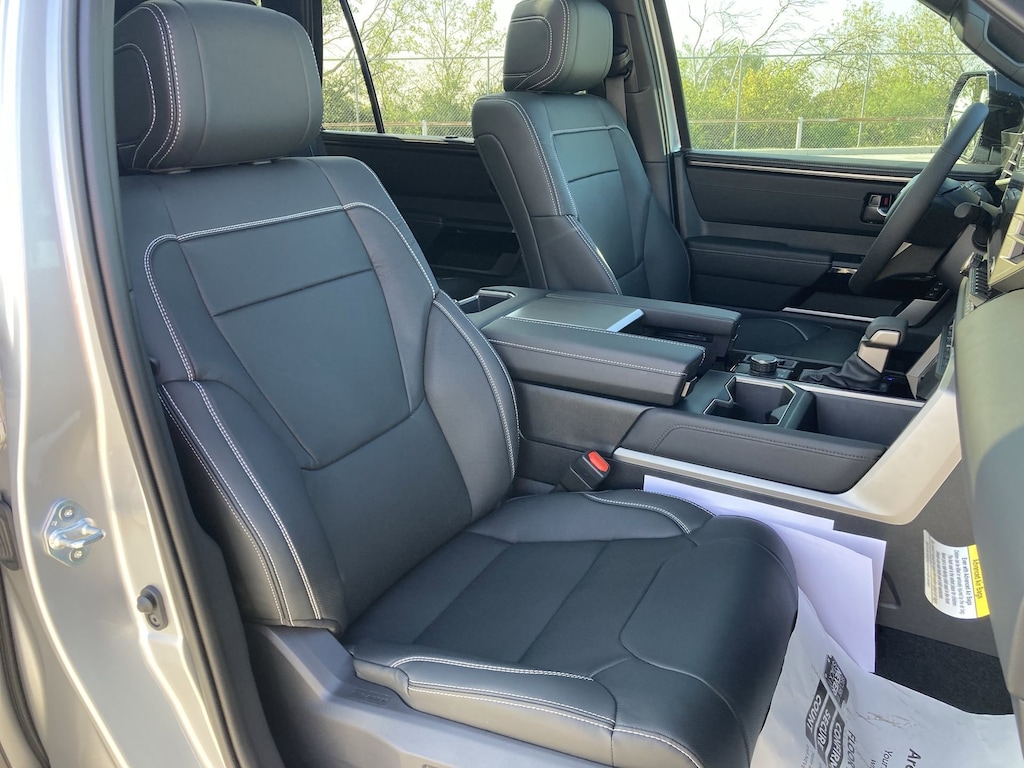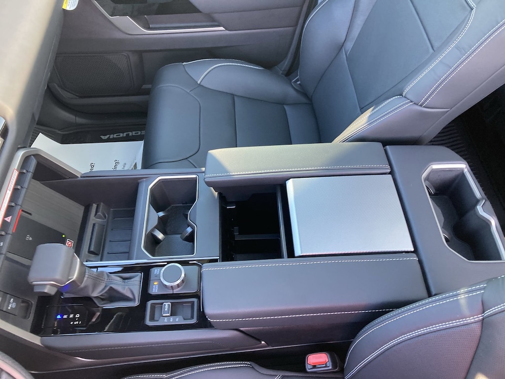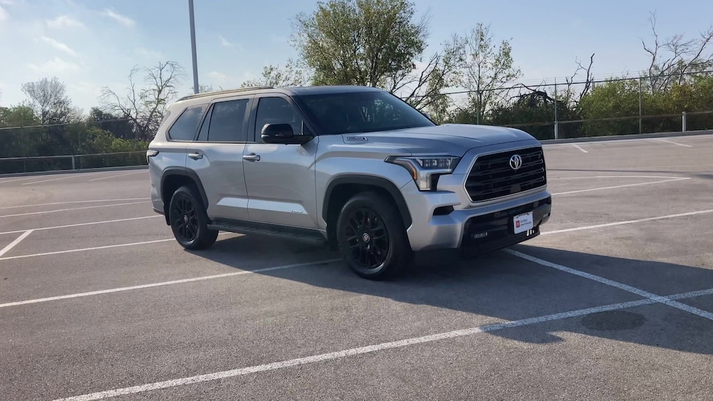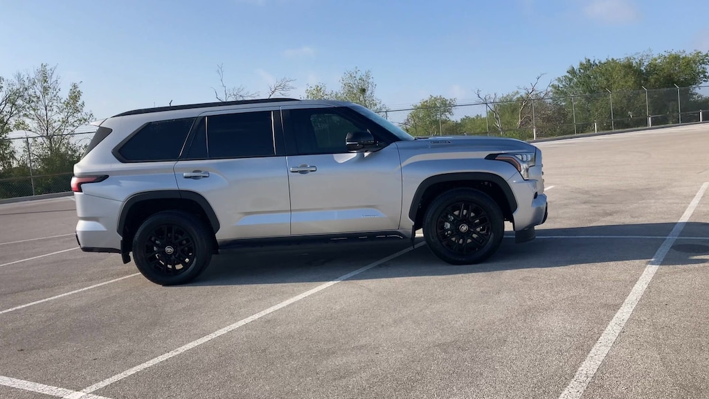 Features: Nightshade Package (4x4 Badge, Black Overfenders & Rear Bumper, Gloss Black Door Handles, Gloss Black Mirror Caps, Gloss Black Tailgate Handle, Gloss Black Window Molding, and Wheels: 20" TRD Sport Matte-Black Alloy), Tow Tech Pkg w/o Wireless Trailer Camera System (Trailer Backup Guide w/Straight Path Assist (SPA)), Toyota Gold Certified Certified, V6 Hybrid, 10-Speed Automatic, 4WD, ABS brakes, Active Cruise Control, Alloy wheels, Electronic Stability Control, Front dual zone A/C, Heated & Ventilated Front Seats, Heated door mirrors, Heated front seats, Illuminated entry, Leather Seat Trim, Low tire pressure warning, Navigation System, Power Liftgate, Remote keyless entry, Traction control, 3rd row seats: split-bench, 4-Wheel Disc Brakes, 8 Speakers, Air Conditioning, AM/FM radio: SiriusXM, Anti-whiplash front head restraints, Apple CarPlay/Android Auto, Auto High-beam Headlights, Auto-dimming door mirrors, Auto-dimming Rear-View mirror, Automatic temperature control, Brake assist, Bumpers: body-color, Delay-off headlights, Driver door bin, Driver vanity mirror, Dual front impact airbags, Dual front side impact airbags, Emergency communication system: Safety Connect (10-year trial), Exterior Parking Camera Rear, Fold & Tumble Rear Seat, Front anti-roll bar, Front Bucket Seats, Front Center Armrest w/Storage, Front fog lights, Front reading lights, Front wheel independent suspension, Fully automatic headlights, Garage door transmitter: HomeLink, Headlight cleaning, Heated steering wheel, JBL Premium Audio, Knee airbag, Leather Shift Knob, Leather steering wheel, Memory seat, Navigation system: Drive Connect (1 year trial) includes Cloud Navigation with real time traffic and Google POI, Occupant sensing airbag, Outside temperature display, Overhead airbag, Overhead console, Panic alarm, Passenger door bin, Passenger vanity mirror, Power door mirrors, Power driver seat, Power passenger seat, Power steering, Power Tilt/Slide Panoramic Roof w/Power Sunshade, Power windows, Radio: 14" Toyota Audio Multimedia, Rear air conditioning, Rear reading lights, Rear seat center armrest, Rear window defroster, Rear window wiper, Reclining 3rd row seat, Second Row Bucket Seats, Security system, Speed control, Speed-sensing steering, Split folding rear seat, Spoiler, Steering wheel mounted audio controls, Tachometer, Telescoping steering wheel, Tilt steering wheel, Trip computer, Turn signal indicator mirrors, Variably intermittent wipers, Ventilated front seats, Voltmeter, Wheels: 20" Machined-Finish Alloy, and Wireless Smartphone Charger.