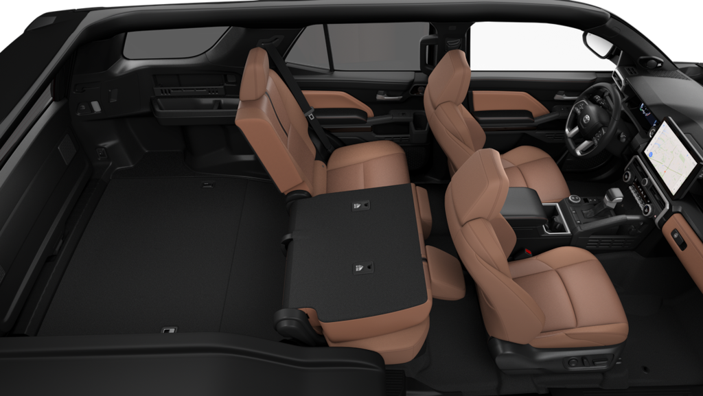 - 60/40 split, reclining and tumble-folding second-row seat with center armrest and cup holders.