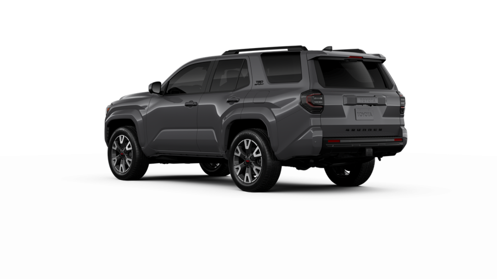 - Gloss-black honeycomb-style grille; color-keyed mirror caps, door handles, overfenders, and rear spoiler; black "trd sport" and "4runner" badges.