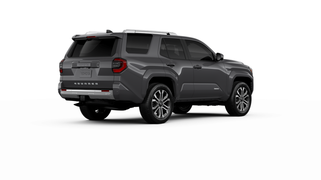 - Satin-chrome tri-bar grille; color-keyed mirror caps, door handles, overfenders, and rear spoiler; satin-chrome "limited" and "4runner" badges.