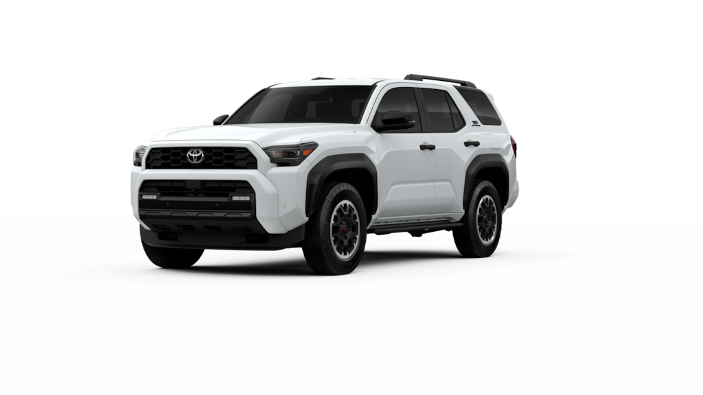 - Black honeycomb-style grille, mirror caps, door handles, and overfenders; color-keyed rear spoiler; black "trd off road" and "4runner" badges.