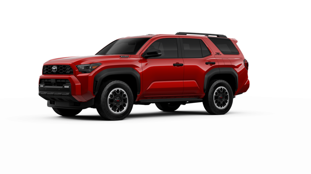 Welcome to Cavender Toyota, a Cavender Auto Family dealership. This vehicle is located at 5730 NW Loop 410, San Antonio, TX 78238. Here at Cavender, we build relationships based on trust and integrity to exceed your expectations in your ownership experience. Quite simply, we strive to Make Confidence Happen! So stop by and allow us to serve your automotive needs; we would love to meet you.Red 2025 Toyota 4Runner i-FORCE MAX Hybrid TRD Off Road 4WD 8-Speed Automatic 2.4L I4 FI Hybrid Turbocharged DOHC 16VFeatures: TRD Off Road Base, 2.4L I4 FI Hybrid Turbocharged DOHC 16V, 4-Wheel Disc Brakes, 8 Speakers, ABS brakes, Air Conditioning, Alloy wheels, AM/FM radio: SiriusXM, Anti-whiplash front head restraints, Apple CarPlay/Android Auto, Auto High-beam Headlights, Automatic temperature control, Brake assist, Bumpers: body-color, Driver door bin, Driver vanity mirror, Dual front impact airbags, Dual front side impact airbags, Electronic Stability Control, Emergency communication system: Safety Connect (1-year trial), Exterior Parking Camera Rear, Fabric Seat Trim, Front & Rear Molded Black 4Runner Mudguards (TMS), Front anti-roll bar, Front Bucket Seats, Front Center Armrest, Front dual zone A/C, Front fog lights, Front reading lights, Front wheel independent suspension, Heated door mirrors, Heated Front Bucket Seats, Illuminated entry, Interior D-Pillar Cargo Lights (TMS), Knee airbag, Leather Shift Knob, Leather steering wheel, Low tire pressure warning, Occupant sensing airbag, Outside temperature display, Overhead airbag, Overhead console, Panic alarm, Passenger door bin, Passenger vanity mirror, Power door mirrors, Power steering, Power windows, Prewired Auxiliary Switches, Radio: 8" Audio, Rear anti-roll bar, Rear seat center armrest, Rear side impact airbag, Rear window defroster, Rear window wiper, Remote keyless entry, Security system, Speed control, Speed-sensing steering, Split folding rear seat, Spoiler, Steering wheel mounted audio controls, Tachometer, Telescoping steering wheel, Tilt steering wheel, Traction control, Trip computer, Variably intermittent wipers, and Wheels: 18" Matte-Black Painted Alloy.
