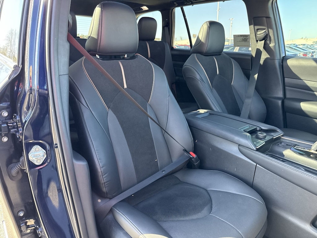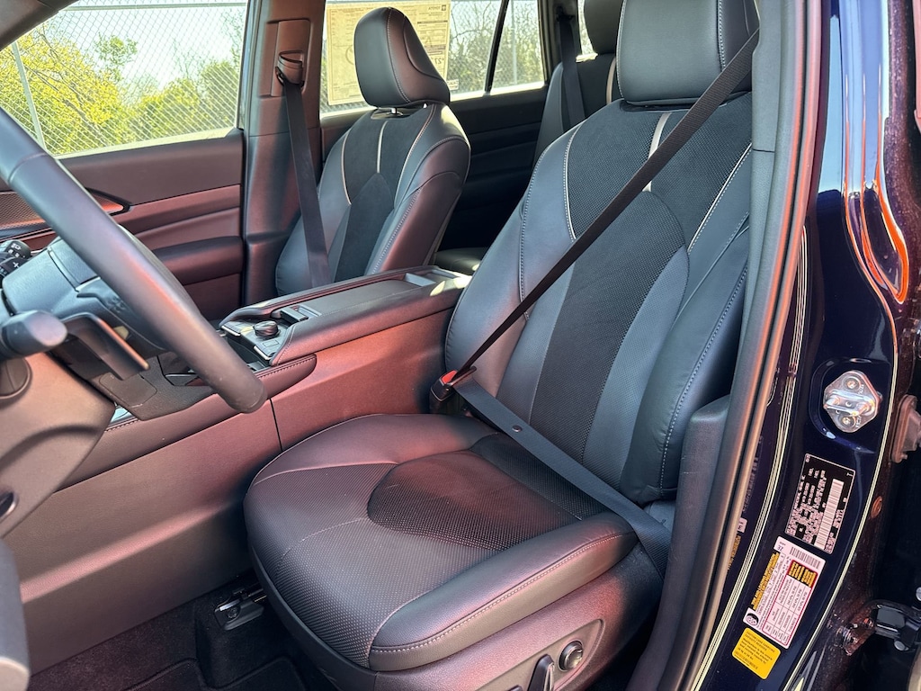 - Leather-trimmed with ultrasuede®front- and second-row seats; heated and ventilated front seats; 10-way power-adjustable driver's seat including power lumbar support; 8-way power-adjustable front passenger seat; seat memory function.Ultrasuede® is a registered trademark of toray industries, inc.