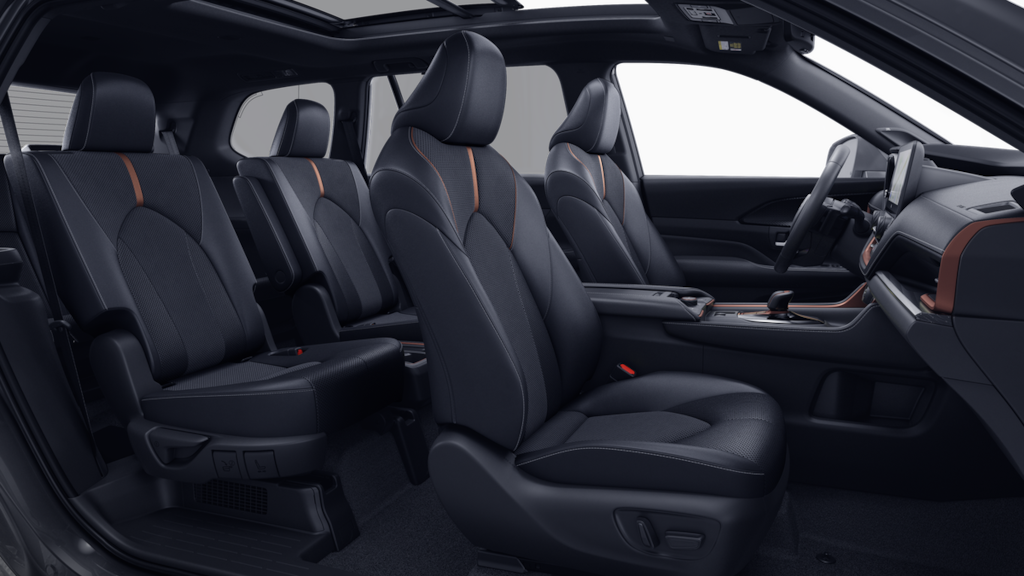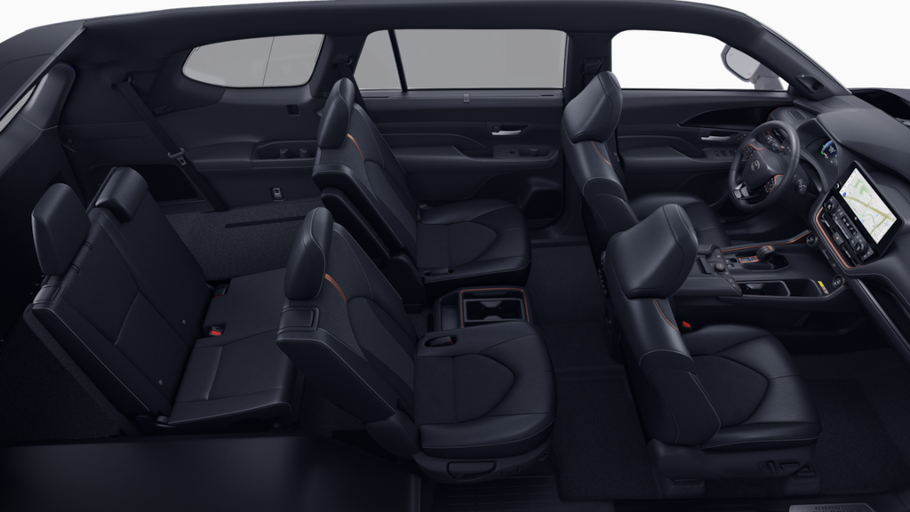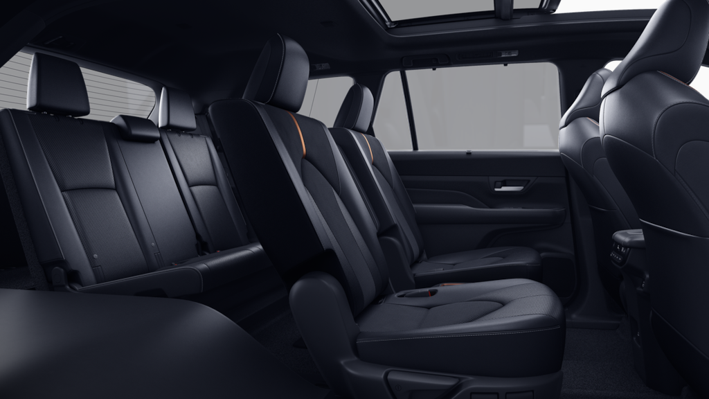 - 7-passenger seating with second-row fold-down captain's chairs and fold-down inboard armrests, adjustable headrests and two cup holders mounted on the floor; and 60/40 split, fold-down third-row seats with sliding headrests and recline function.