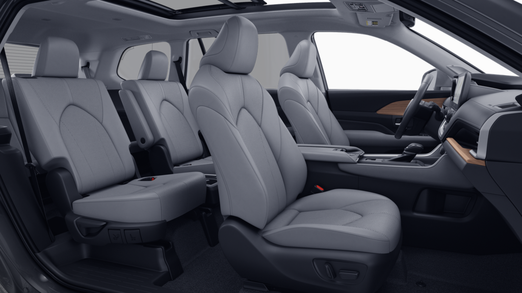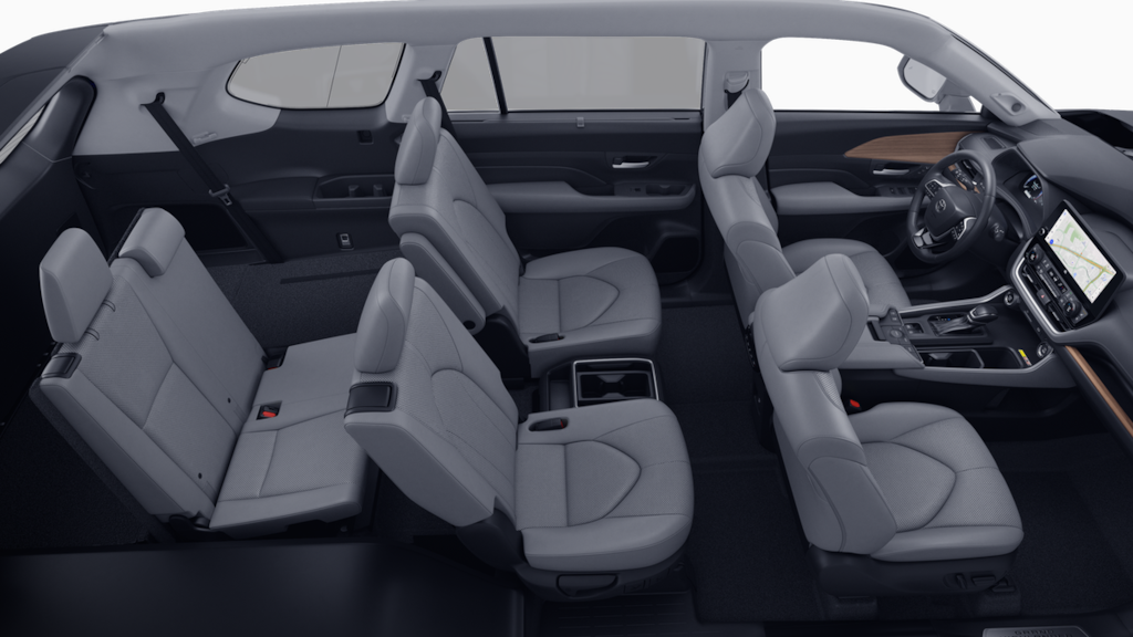 - 7-passenger seating with second-row fold-down captain's chairs and fold-down inboard armrests, adjustable headrests and two cup holders mounted on the floor; and 60/40 split, fold-down third-row seats with sliding headrests and recline function.