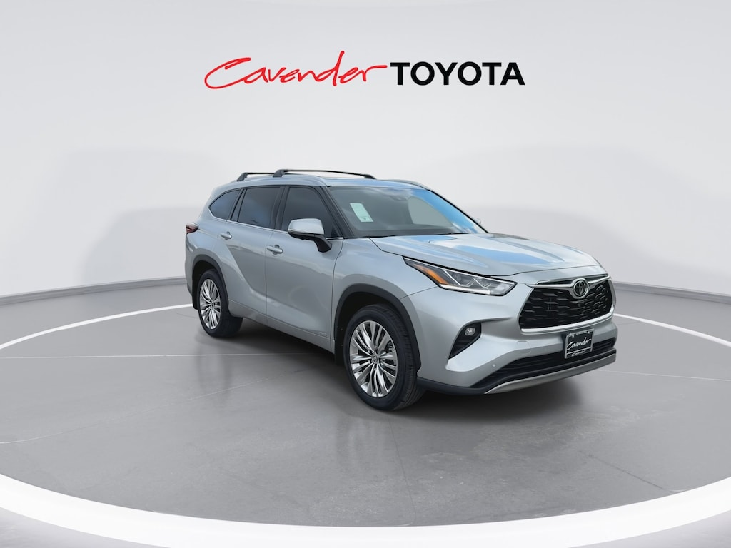 Welcome to Cavender Toyota, a Cavender Auto Family dealership. This vehicle is located at 5730 NW Loop 410, San Antonio, TX 78238. Here at Cavender, we build relationships based on trust and integrity to exceed your expectations in your ownership experience. Quite simply, we strive to Make Confidence Happen! So stop by and allow us to serve your automotive needs; we would love to meet you.Celestial Silver 2025 Toyota Highlander Hybrid Platinum AWD eCVT 2.5L I4 PDI Hybrid DOHC 16V LEV3-SULEV30Features: Platinum Package (Electronic Inner Mirror, High Grade LED, Panoramic Sunroof and Moonroof, and Panoramic View Monitor), 2.5L I4 PDI Hybrid DOHC 16V LEV3-SULEV30, 11 Speakers, 20" Alloy Wheels, 3rd row seats: split-bench, 4-Wheel Disc Brakes, ABS brakes, Air Conditioning, Alloy wheels, AM/FM radio: SiriusXM, Apple CarPlay/Android Auto, Auto High-beam Headlights, Auto-dimming Rear-View mirror, Automatic temperature control, Brake assist, Bumpers: body-color, Delay-off headlights, Driver door bin, Driver vanity mirror, Dual front impact airbags, Dual front side impact airbags, Electronic Stability Control, Emergency communication system: Safety Connect (up to 10-year trial subscription), Exterior Parking Camera Rear, Four wheel independent suspension, Front anti-roll bar, Front Bucket Seats, Front Center Armrest, Front dual zone A/C, Front fog lights, Front reading lights, Fully automatic headlights, Garage door transmitter: HomeLink, Heads-Up Display, Heated and Ventilated Front Bucket Seats, Heated door mirrors, Heated front seats, Heated rear seats, Heated steering wheel, Illuminated entry, Knee airbag, Leather Seat Trim, Leather Shift Knob, Leather steering wheel, Low tire pressure warning, Memory seat, Navigation system: Drive Connect Cloud Navigation (1-year trial subscription), Occupant sensing airbag, Outside temperature display, Overhead airbag, Overhead console, Panic alarm, Passenger door bin, Passenger vanity mirror, Power door mirrors, Power driver seat, Power Liftgate, Power moonroof, Power passenger seat, Power steering, Power windows, Radio: 12.3" Toyota Audio Multimedia with JBL Premium Audio, Rain sensing wipers, Rear air conditioning, Rear anti-roll bar, Rear reading lights, Rear window defroster, Rear window wiper, Reclining 3rd row seat, Remote keyless entry, Security system, Speed control, Speed-sensing steering, Split folding rear seat, Spoiler, Steering wheel mounted audio controls, Telescoping steering wheel, Tilt steering wheel, Traction control, Trip computer, Turn signal indicator mirrors, Variably intermittent wipers, and Ventilated front seats.