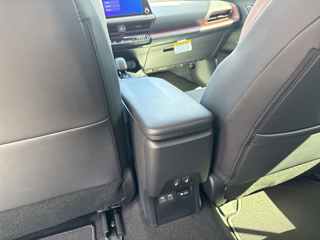 - Center console with armrest and storage compartment.