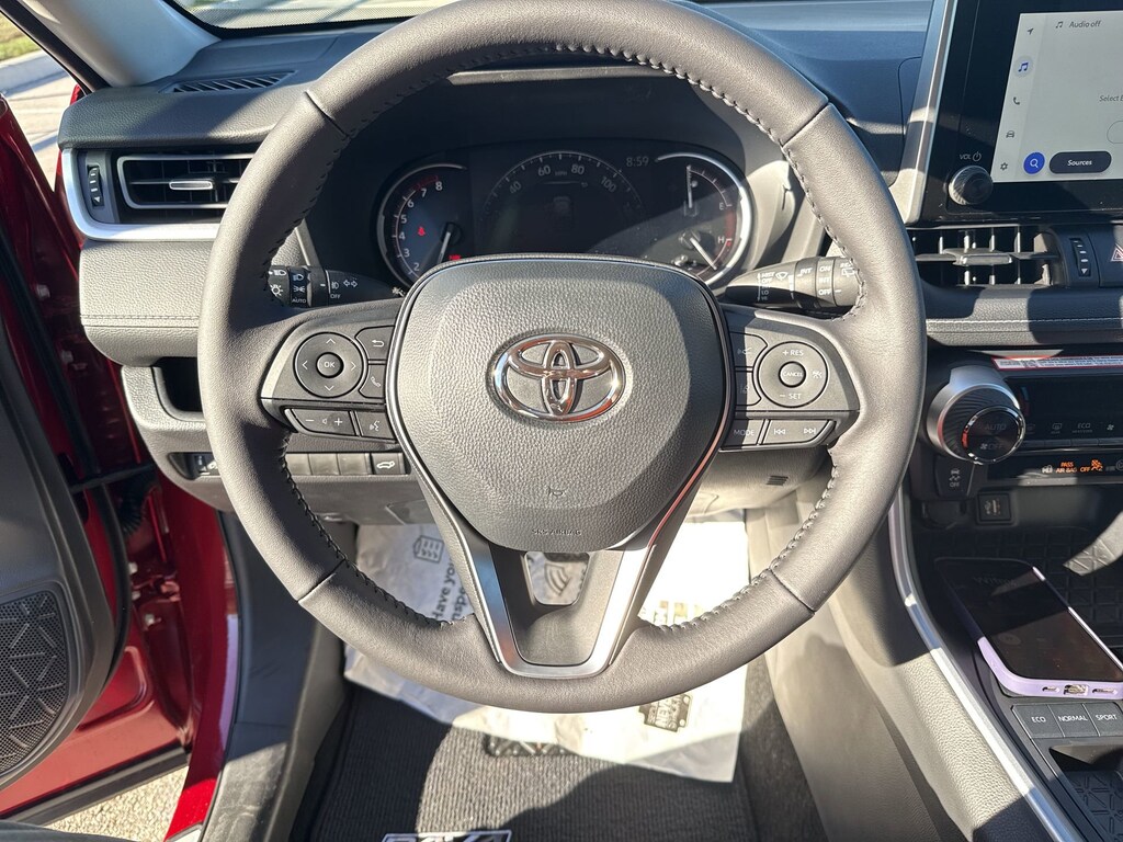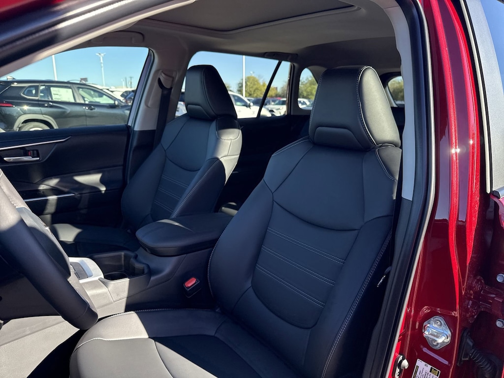 Welcome to Cavender Toyota, a Cavender Auto Family dealership. This vehicle is located at 5730 NW Loop 410, San Antonio, TX 78238. Here at Cavender, we build relationships based on trust and integrity to exceed your expectations in your ownership experience. Quite simply, we strive to Make Confidence Happen! So stop by and allow us to serve your automotive needs; we would love to meet you.Red 2025 Toyota RAV4 XLE Premium FWD 8-Speed Automatic 2.5L 4-Cylinder DOHC Dual VVT-iFeatures: Convenience Package (3 Spoke Leather Steering Wheel), XLE Premium Package, Black Artificial Leather, 4-Wheel Disc Brakes, 6 Speakers, ABS brakes, Air Conditioning, Alloy wheels, AM/FM radio: SiriusXM, Auto High-beam Headlights, Automatic temperature control, Brake assist, Bumpers: body-color, Carpet Floor Mats/Cargo Mat (TMS), Delay-off headlights, Driver door bin, Driver vanity mirror, Dual front impact airbags, Dual front side impact airbags, Electronic Stability Control, Emergency communication system: Safety Connect (10-year trial), Exterior Parking Camera Rear, Four wheel independent suspension, Front anti-roll bar, Front Bucket Seats, Front Center Armrest, Front dual zone A/C, Front reading lights, Fully automatic headlights, Heated door mirrors, Illuminated entry, Knee airbag, Leather Shift Knob, Leather steering wheel, Low tire pressure warning, Mudguards (TMS), Occupant sensing airbag, Outside temperature display, Overhead airbag, Overhead console, Panic alarm, Passenger door bin, Passenger vanity mirror, Power door mirrors, Power driver seat, Power Liftgate, Power moonroof, Power steering, Power windows, Radio data system, Radio: AM/FM/XM Audio System, Rear anti-roll bar, Rear seat center armrest, Rear window defroster, Rear window wiper, Remote keyless entry, SofTex Seat Trim, Speed control, Speed-sensing steering, Split folding rear seat, Spoiler, Steering wheel mounted audio controls, Tachometer, Telescoping steering wheel, Tilt steering wheel, Traction control, Trip computer, Turn signal indicator mirrors, Variably intermittent wipers, and Wheels: 19" 5-Spoke Silver Alloy.