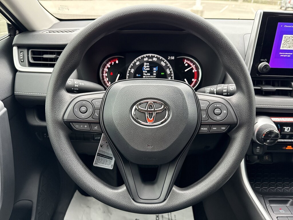 Welcome to Cavender Toyota, a Cavender Auto Family dealership. This vehicle is located at 5730 NW Loop 410, San Antonio, TX 78238. Here at Cavender, we build relationships based on trust and integrity to exceed your expectations in your ownership experience. Quite simply, we strive to Make Confidence Happen! So stop by and allow us to serve your automotive needs; we would love to meet you.Midnight Black 2025 Toyota RAV4 XLE FWD 8-Speed Automatic 2.5L 4-Cylinder DOHC Dual VVT-iFeatures: Convenience Package (Front Door Smart Key System w/Push Button Start and Tilt & Slide Moon Roof), Black Fabric Cloth, 4-Wheel Disc Brakes, 6 Speakers, ABS brakes, Air Conditioning, Alloy wheels, AM/FM radio: SiriusXM, Auto High-beam Headlights, Automatic temperature control, Brake assist, Bumpers: body-color, Carpet Floor Mats/Cargo Mat (TMS), Delay-off headlights, Driver door bin, Driver vanity mirror, Dual front impact airbags, Dual front side impact airbags, Electronic Stability Control, Emergency communication system: Safety Connect (10-year trial), Exterior Parking Camera Rear, Fabric Seat Trim, Four wheel independent suspension, Front anti-roll bar, Front Bucket Seats, Front Center Armrest, Front dual zone A/C, Front reading lights, Fully automatic headlights, Heated door mirrors, Illuminated entry, Knee airbag, Low tire pressure warning, Mudguards (TMS), Occupant sensing airbag, Outside temperature display, Overhead airbag, Overhead console, Panic alarm, Passenger door bin, Passenger vanity mirror, Power door mirrors, Power driver seat, Power steering, Power windows, Radio data system, Radio: AM/FM/XM Audio System, Rear anti-roll bar, Rear seat center armrest, Rear window defroster, Rear window wiper, Remote keyless entry, Speed control, Speed-sensing steering, Split folding rear seat, Spoiler, Steering wheel mounted audio controls, Tachometer, Telescoping steering wheel, Tilt steering wheel, Traction control, Trip computer, Turn signal indicator mirrors, Variably intermittent wipers, and Wheels: 17" 5-Spoke Silver Alloy.