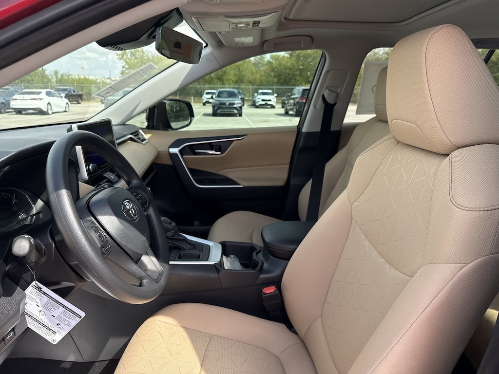 Welcome to Cavender Toyota, a Cavender Auto Family dealership. This vehicle is located at 5730 NW Loop 410, San Antonio, TX 78238. Here at Cavender, we build relationships based on trust and integrity to exceed your expectations in your ownership experience. Quite simply, we strive to Make Confidence Happen! So stop by and allow us to serve your automotive needs; we would love to meet you.Red 2025 Toyota RAV4 XLE FWD 8-Speed Automatic 2.5L 4-Cylinder DOHC Dual VVT-iFeatures: Convenience Package (Front Door Smart Key System w/Push Button Start and Tilt & Slide Moon Roof), Nutmeg Cloth, 4-Wheel Disc Brakes, 6 Speakers, ABS brakes, Air Conditioning, Alloy wheels, AM/FM radio: SiriusXM, Auto High-beam Headlights, Automatic temperature control, Brake assist, Bumpers: body-color, Carpet Floor Mats/Cargo Mat (TMS), Delay-off headlights, Driver door bin, Driver vanity mirror, Dual front impact airbags, Dual front side impact airbags, Electronic Stability Control, Emergency communication system: Safety Connect (10-year trial), Exterior Parking Camera Rear, Fabric Seat Trim, Four wheel independent suspension, Front anti-roll bar, Front Bucket Seats, Front Center Armrest, Front dual zone A/C, Front reading lights, Fully automatic headlights, Heated door mirrors, Illuminated entry, Knee airbag, Low tire pressure warning, Mudguards (TMS), Occupant sensing airbag, Outside temperature display, Overhead airbag, Overhead console, Panic alarm, Passenger door bin, Passenger vanity mirror, Power door mirrors, Power driver seat, Power steering, Power windows, Radio data system, Radio: AM/FM/XM Audio System, Rear anti-roll bar, Rear seat center armrest, Rear window defroster, Rear window wiper, Remote keyless entry, Speed control, Speed-sensing steering, Split folding rear seat, Spoiler, Steering wheel mounted audio controls, Tachometer, Telescoping steering wheel, Tilt steering wheel, Traction control, Trip computer, Turn signal indicator mirrors, Variably intermittent wipers, and Wheels: 17" 5-Spoke Silver Alloy.