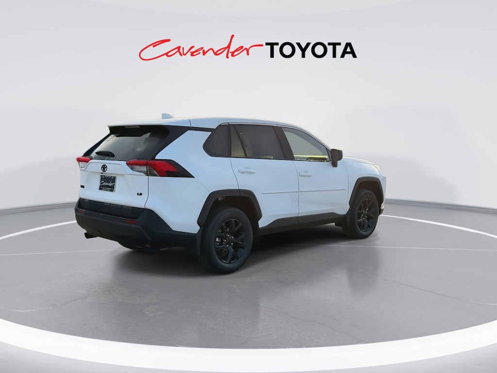 Welcome to Cavender Toyota, a Cavender Auto Family dealership. This vehicle is located at 5730 NW Loop 410, San Antonio, TX 78238. Here at Cavender, we build relationships based on trust and integrity to exceed your expectations in your ownership experience. Quite simply, we strive to Make Confidence Happen! So stop by and allow us to serve your automotive needs; we would love to meet you.Ice 2025 Toyota RAV4 LE FWD 8-Speed Automatic 2.5L 4-Cylinder DOHC Dual VVT-iFeatures: Black Fabric Cloth, 17" Steel Wheels, 4-Wheel Disc Brakes, 6 Speakers, ABS brakes, Air Conditioning, AM/FM radio: SiriusXM, Auto High-beam Headlights, Brake assist, Bumpers: body-color, Driver door bin, Driver vanity mirror, Dual front impact airbags, Dual front side impact airbags, Electronic Stability Control, Emergency communication system: Safety Connect (10-year trial), Exterior Parking Camera Rear, Fabric Seat Trim, Four wheel independent suspension, Front anti-roll bar, Front Bucket Seats, Front Center Armrest, Front reading lights, Illuminated entry, Knee airbag, Low tire pressure warning, Mudguards (TMS), Occupant sensing airbag, Outside temperature display, Overhead airbag, Overhead console, Panic alarm, Passenger door bin, Passenger vanity mirror, Power door mirrors, Power steering, Power windows, Radio data system, Radio: AM/FM/XM Audio System, Rear anti-roll bar, Rear Dual USB Power Port Charger (TMS), Rear seat center armrest, Rear window defroster, Rear window wiper, Remote keyless entry, Speed control, Speed-sensing steering, Split folding rear seat, Spoiler, Steering wheel mounted audio controls, Tachometer, Telescoping steering wheel, Tilt steering wheel, Traction control, and Trip computer.
