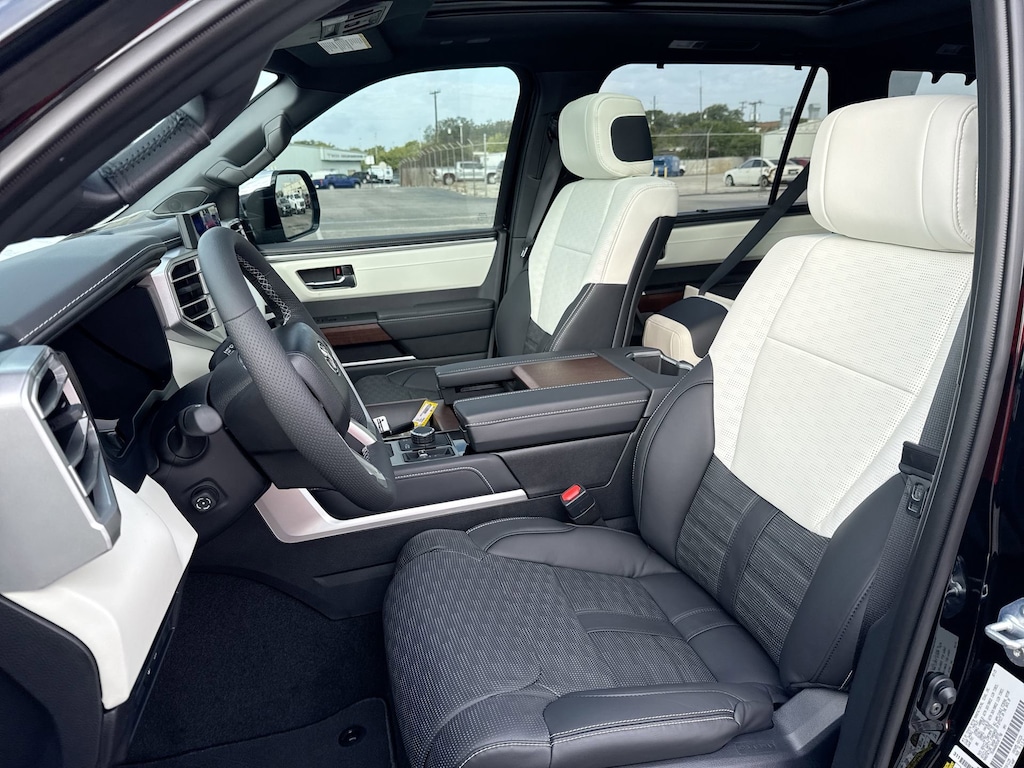 Welcome to Cavender Toyota, a Cavender Auto Family dealership. This vehicle is located at 5730 NW Loop 410, San Antonio, TX 78238. Here at Cavender, we build relationships based on trust and integrity to exceed your expectations in your ownership experience. Quite simply, we strive to Make Confidence Happen! So stop by and allow us to serve your automotive needs; we would love to meet you.Midnight Black 2025 Toyota Sequoia Capstone 4WD 10-Speed Automatic V6 HybridFeatures: Capstone Grade Package, V6 Hybrid, 10-Speed Automatic, 4WD, 14 Speakers, 3rd row seats: split-bench, 4-Wheel Disc Brakes, ABS brakes, Air Conditioning, Alloy wheels, AM/FM radio: SiriusXM, Anti-whiplash front head restraints, Apple CarPlay/Android Auto, Auto High-beam Headlights, Auto tilt-away steering wheel, Auto-dimming door mirrors, Auto-dimming Rear-View mirror, Automatic temperature control, Brake assist, Bumpers: body-color, Compass, Delay-off headlights, Driver door bin, Driver vanity mirror, Dual front impact airbags, Dual front side impact airbags, Electronic Stability Control, Emergency communication system: Safety Connect (10-year trial), Exterior Parking Camera Rear, Front anti-roll bar, Front Bucket Seats, Front Center Armrest w/Storage, Front dual zone A/C, Front fog lights, Front reading lights, Front wheel independent suspension, Fully automatic headlights, Garage door transmitter: HomeLink, Genuine wood door panel insert, Headlight cleaning, Heads-Up Display, Heated & Ventilated Front Seats, Heated door mirrors, Heated front seats, Heated rear seats, Heated steering wheel, Illuminated entry, Knee airbag, Leather Shift Knob, Leather steering wheel, Low tire pressure warning, Memory seat, Navigation system: Drive Connect (1 year trial) includes Cloud Navigation with real time traffic and Google POI, Occupant sensing airbag, Outside temperature display, Overhead airbag, Overhead console, Panic alarm, Passenger door bin, Passenger vanity mirror, Power door mirrors, Power driver seat, Power Liftgate, Power moonroof, Power passenger seat, Power steering, Power windows, Premium audio system: JBL, Radio: 14" Toyota Audio Multimedia w/JBL Prem Aud, Rain sensing wipers, Rear air conditioning, Rear reading lights, Rear seat center armrest, Rear window defroster, Rear window wiper, Reclining 3rd row seat, Remote keyless entry, Security system, Semi-Aniline Leather Seat Trim, Speed control, Speed-sensing steering, Split folding rear seat, Spoiler, Sport steering wheel, Steering wheel mounted audio controls, Tachometer, Telescoping steering wheel, Tilt steering wheel, Traction control, Trip computer, Turn signal indicator mirrors, Variably intermittent wipers, Ventilated front seats, Ventilated rear seats, Voltmeter, Wheel Locks (TMS), and Wheels: 22" Dark Chrome Machined-Finish Alloy.