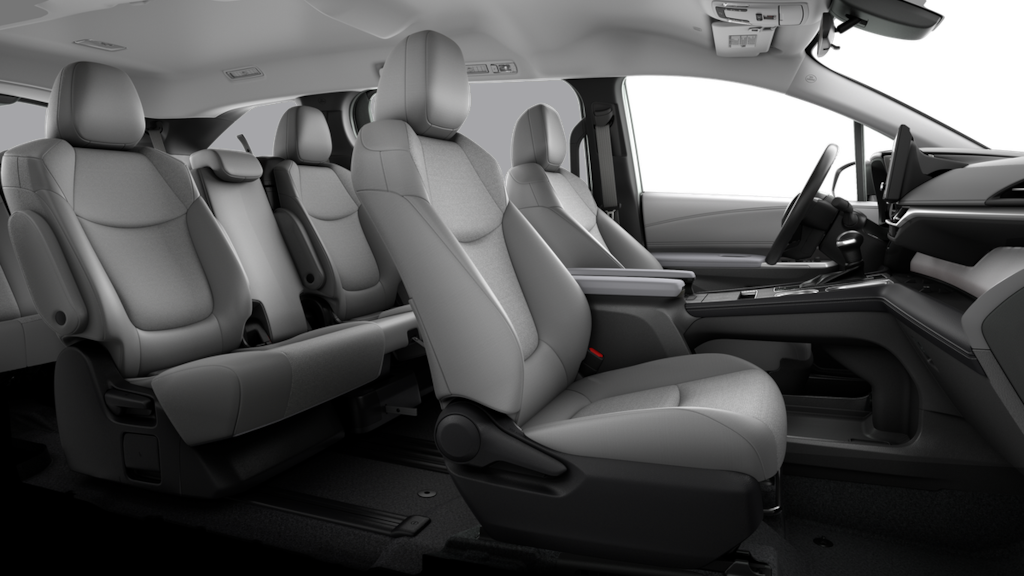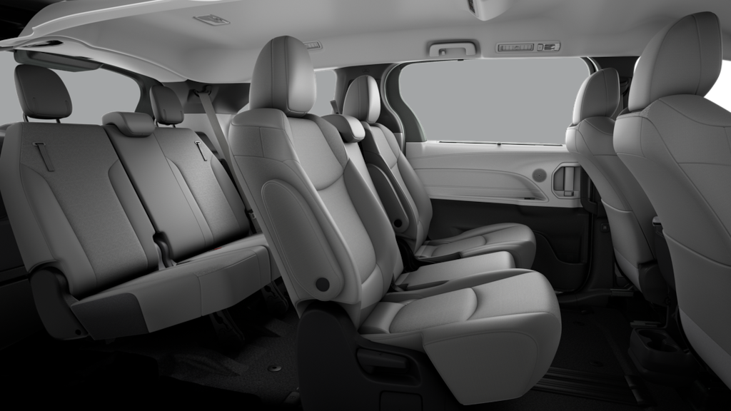 - 8-passenger seating with fabric second-row bench with stowable center seat.