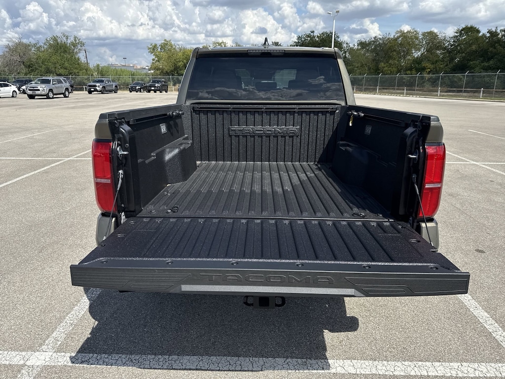 Welcome to Cavender Toyota, a Cavender Auto Family dealership. This vehicle is located at 5730 NW Loop 410, San Antonio, TX 78238. Here at Cavender, we build relationships based on trust and integrity to exceed your expectations in your ownership experience. Quite simply, we strive to Make Confidence Happen! So stop by and allow us to serve your automotive needs; we would love to meet you.Bronze 2025 Toyota Tacoma TRD Sport 4WD 8-Speed Automatic 2.4L 4-CylinderFeatures: 4WD, 3.583 Axle Ratio, 4-Wheel Disc Brakes, 6 Speakers, ABS brakes, Air Conditioning, Alloy wheels, AM/FM radio: SiriusXM, Anti-whiplash front head restraints, Apple CarPlay/Android Auto, Auto High-beam Headlights, Auto-dimming Rear-View mirror, Automatic temperature control, Bed Scene Lighting (TMS), Bed Step (TMS), Black Chrome Exhaust Tip (TMS), Brake assist, Bumpers: body-color, Driver door bin, Driver vanity mirror, Dual front impact airbags, Dual front side impact airbags, Electronic Stability Control, Emergency communication system: Safety Connect (1-year trial), Exterior Parking Camera Rear, Fabric Seat Trim, Four wheel independent suspension, Front anti-roll bar, Front Bucket Seats, Front Center Armrest, Front fog lights, Front reading lights, Fully automatic headlights, Heated door mirrors, Illuminated entry, JBL Premium Audio, Knee airbag, Leather Shift Knob, Leather steering wheel, Low tire pressure warning, Occupant sensing airbag, Outside temperature display, Overhead airbag, Overhead console, Panic alarm, Passenger door bin, Passenger vanity mirror, Power door mirrors, Power steering, Power windows, Predator Step (TMS), Radio: 8" Toyota Audio Multimedia, Radio: Premium Audio w/14" Display, Rear step bumper, Rear window defroster, Remote keyless entry, Security system, SofTex Seat Trim, Speed control, Speed-sensing steering, Split folding rear seat, Spray-On Bed Liner (TMS), Steering wheel mounted audio controls, Tachometer, Telescoping steering wheel, Tilt steering wheel, Traction control, Trip computer, Turn signal indicator mirrors, Variably intermittent wipers, and Wheels: 18" TRD Sport Alloy.